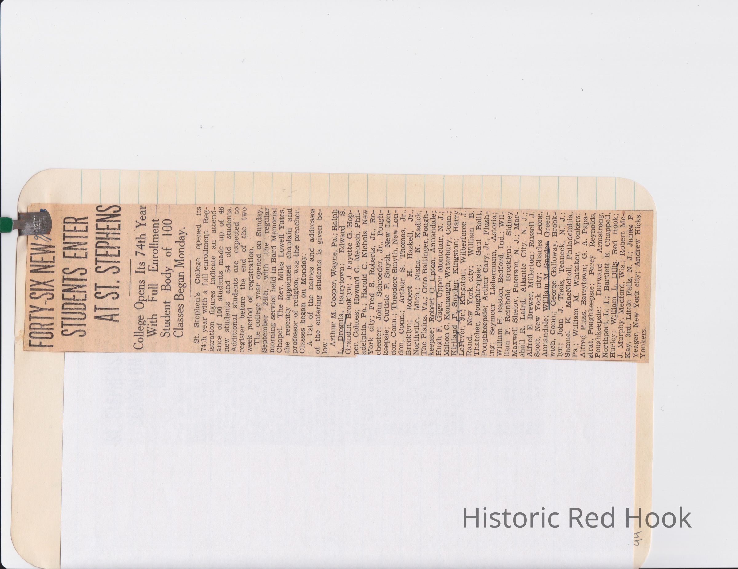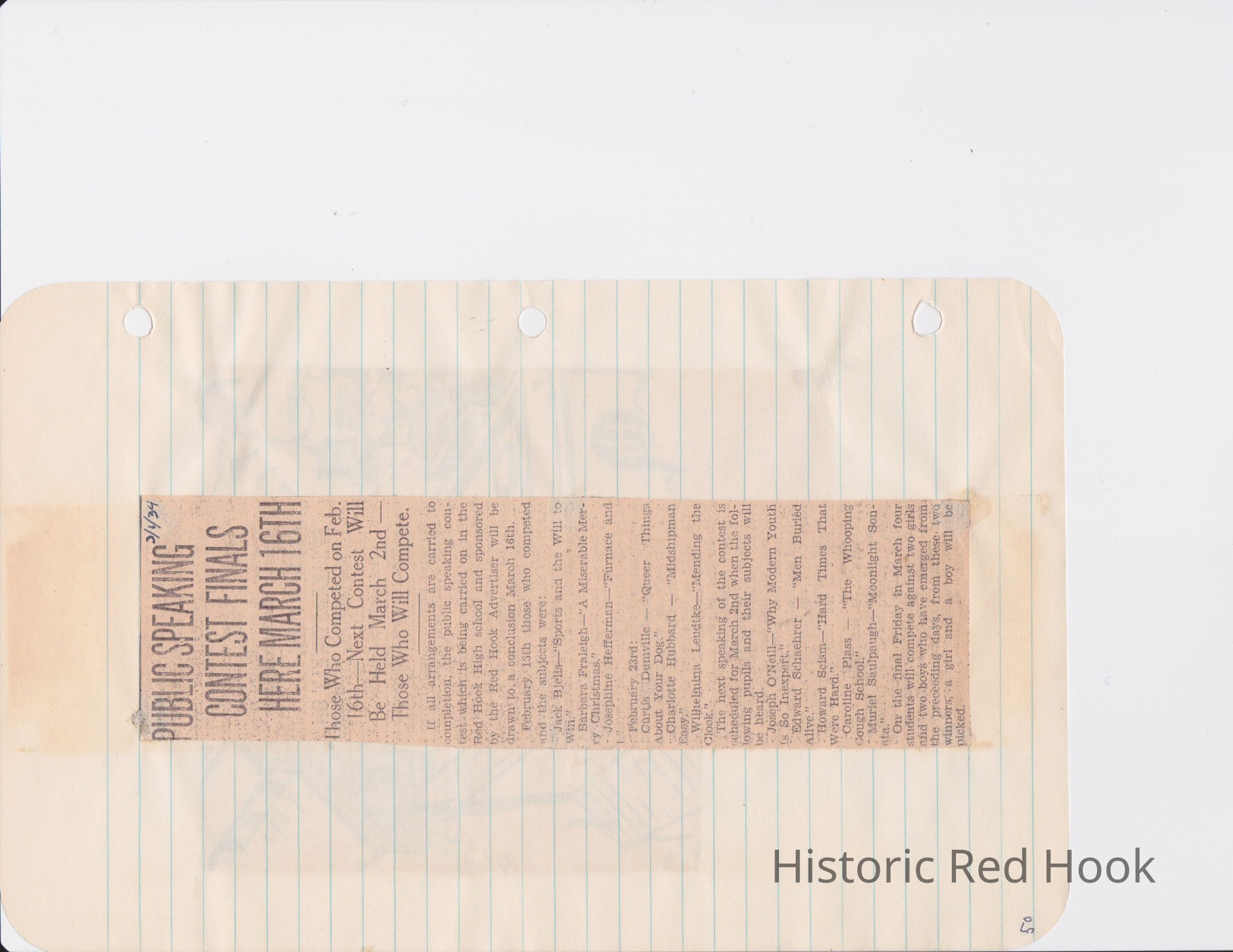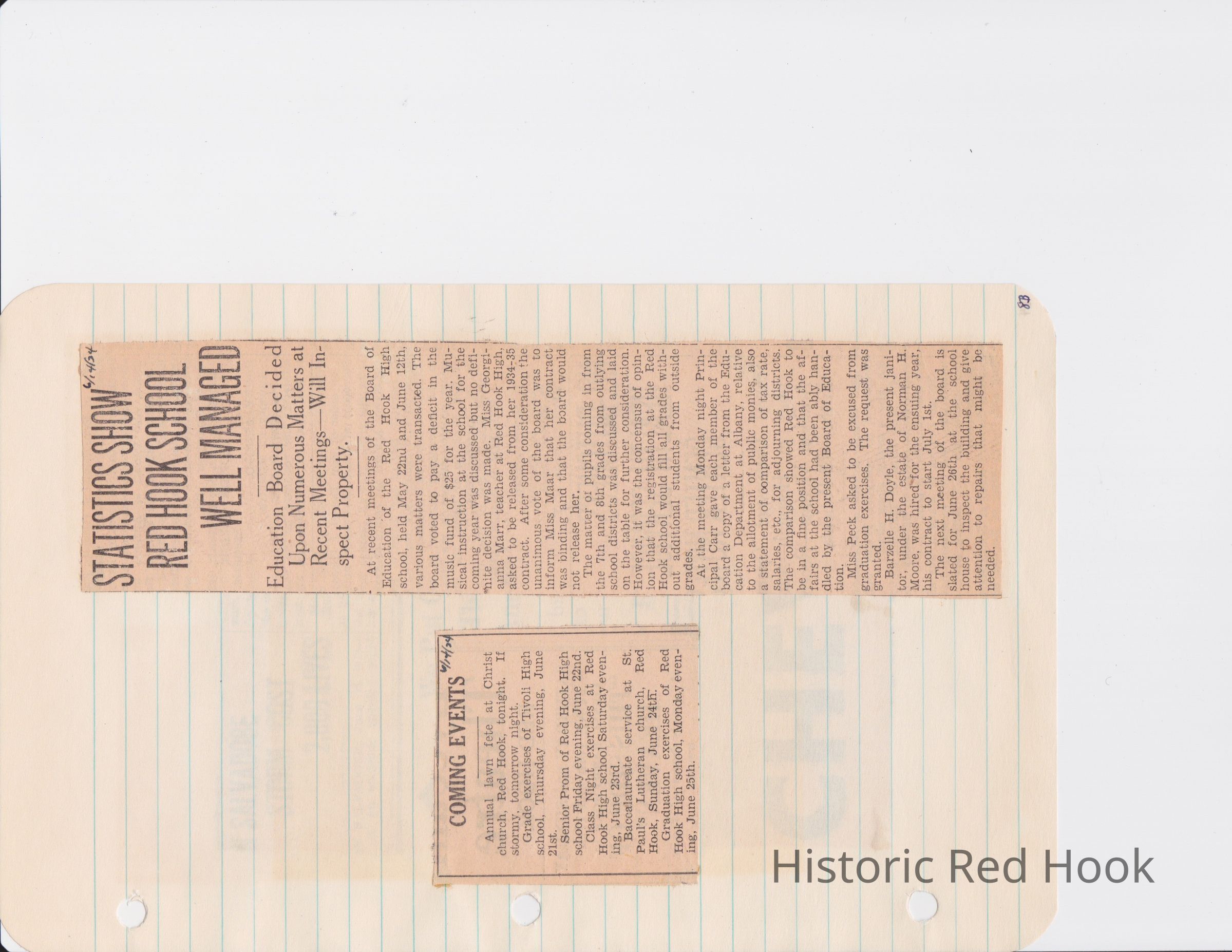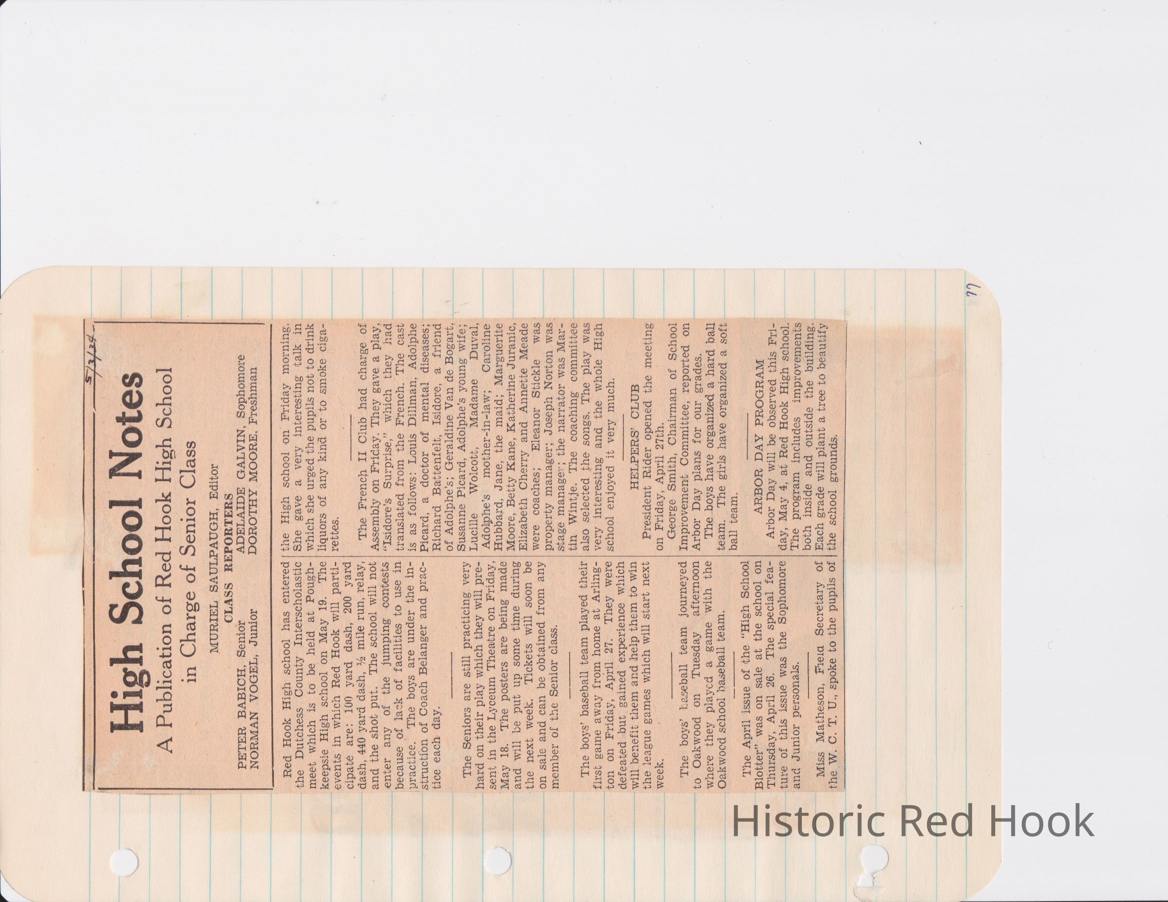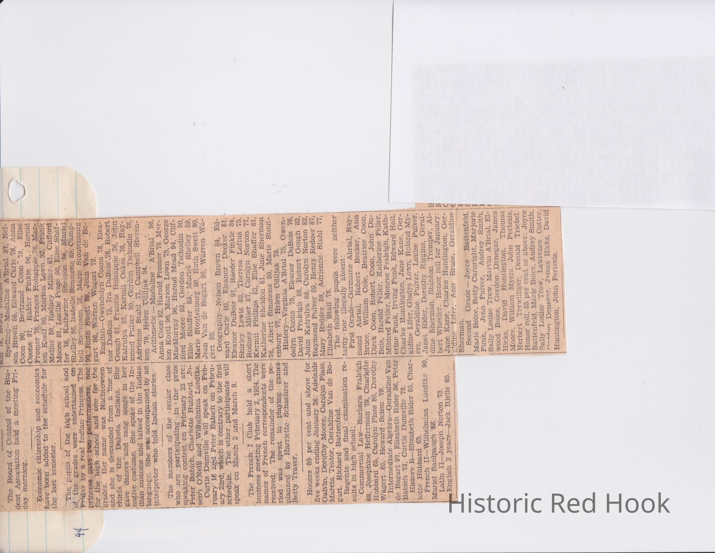 Scrapbook put together by Norman Vogel. It contains newspaper clippings about school news and sports from Red Hook High School 1933-1934. It was given to Patsy Vogel by Norman's widow, Margaret Vogel.