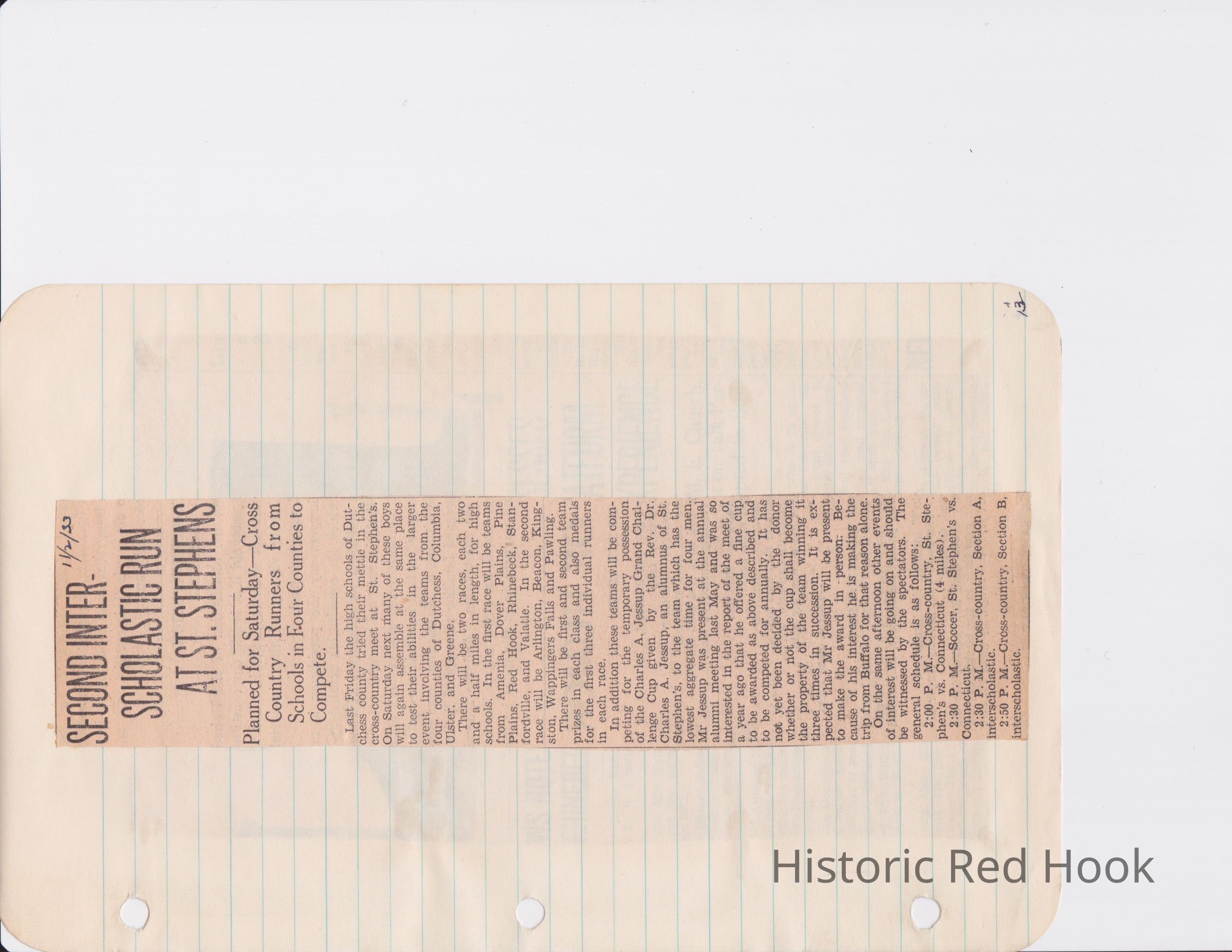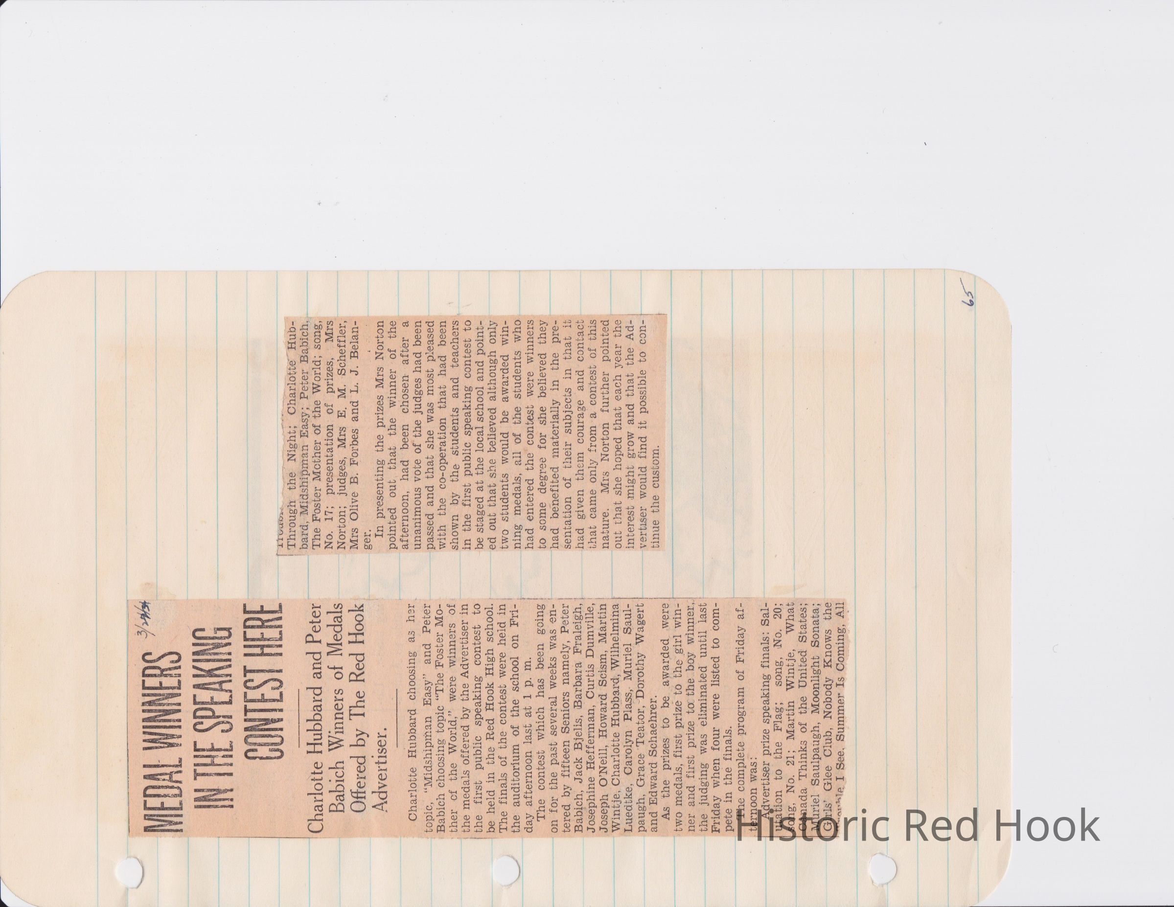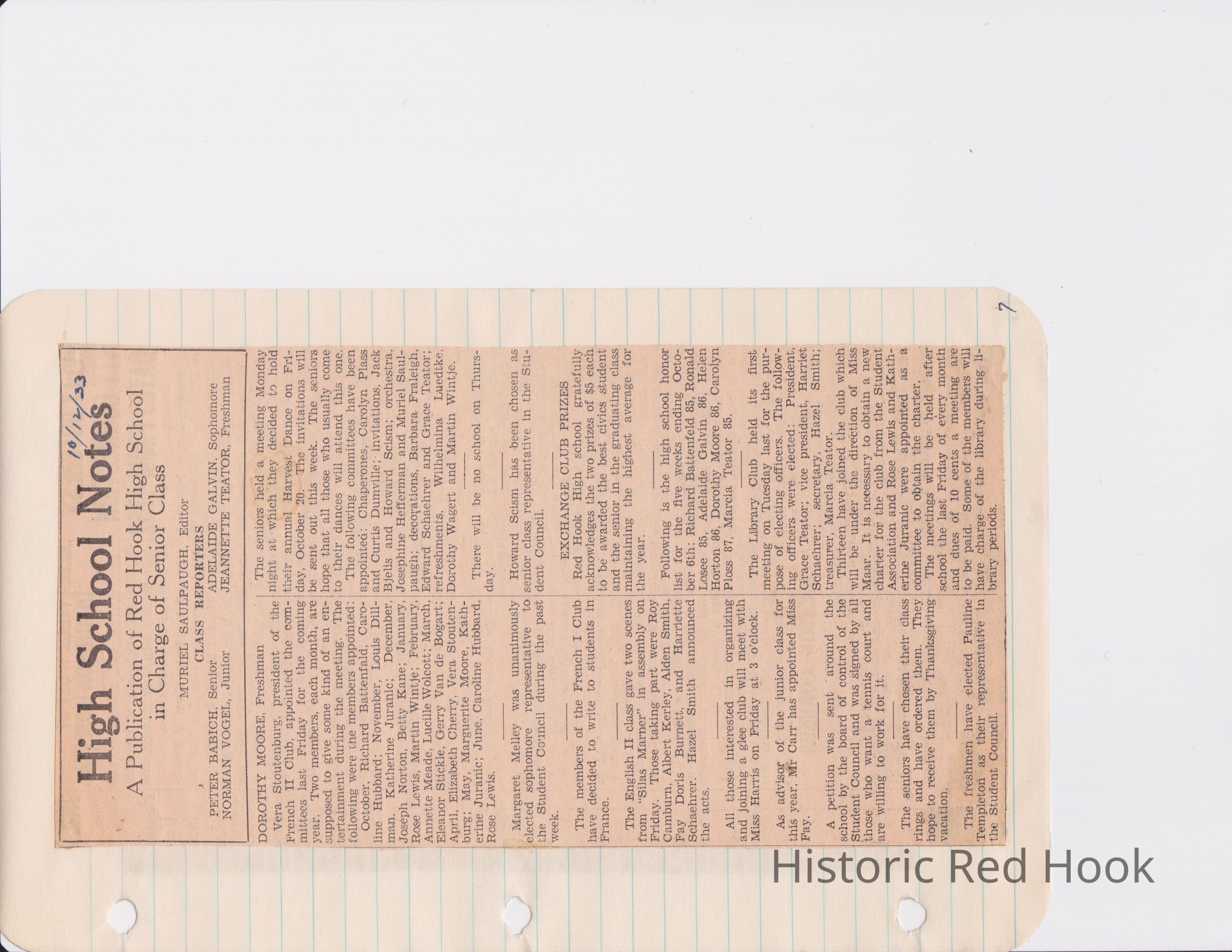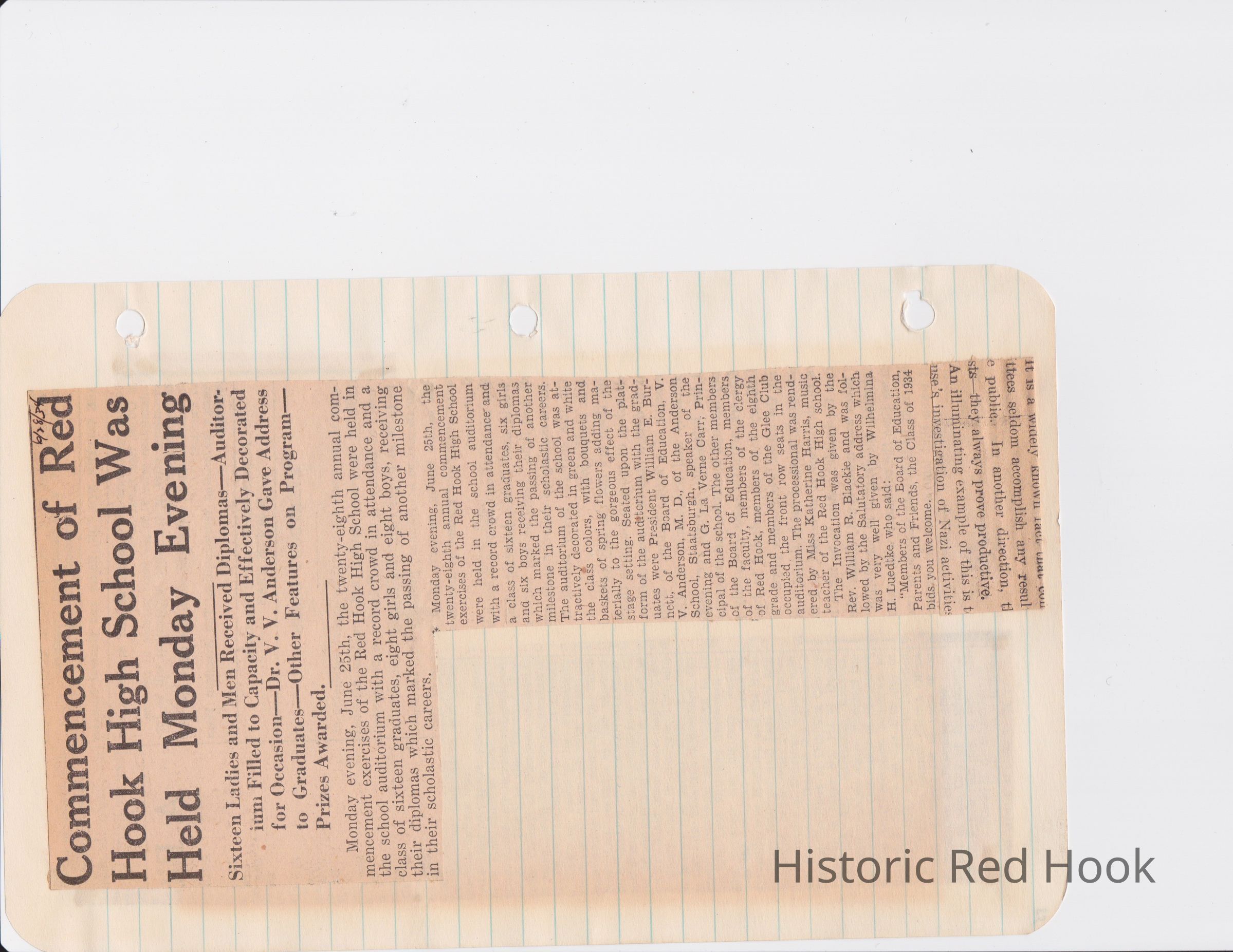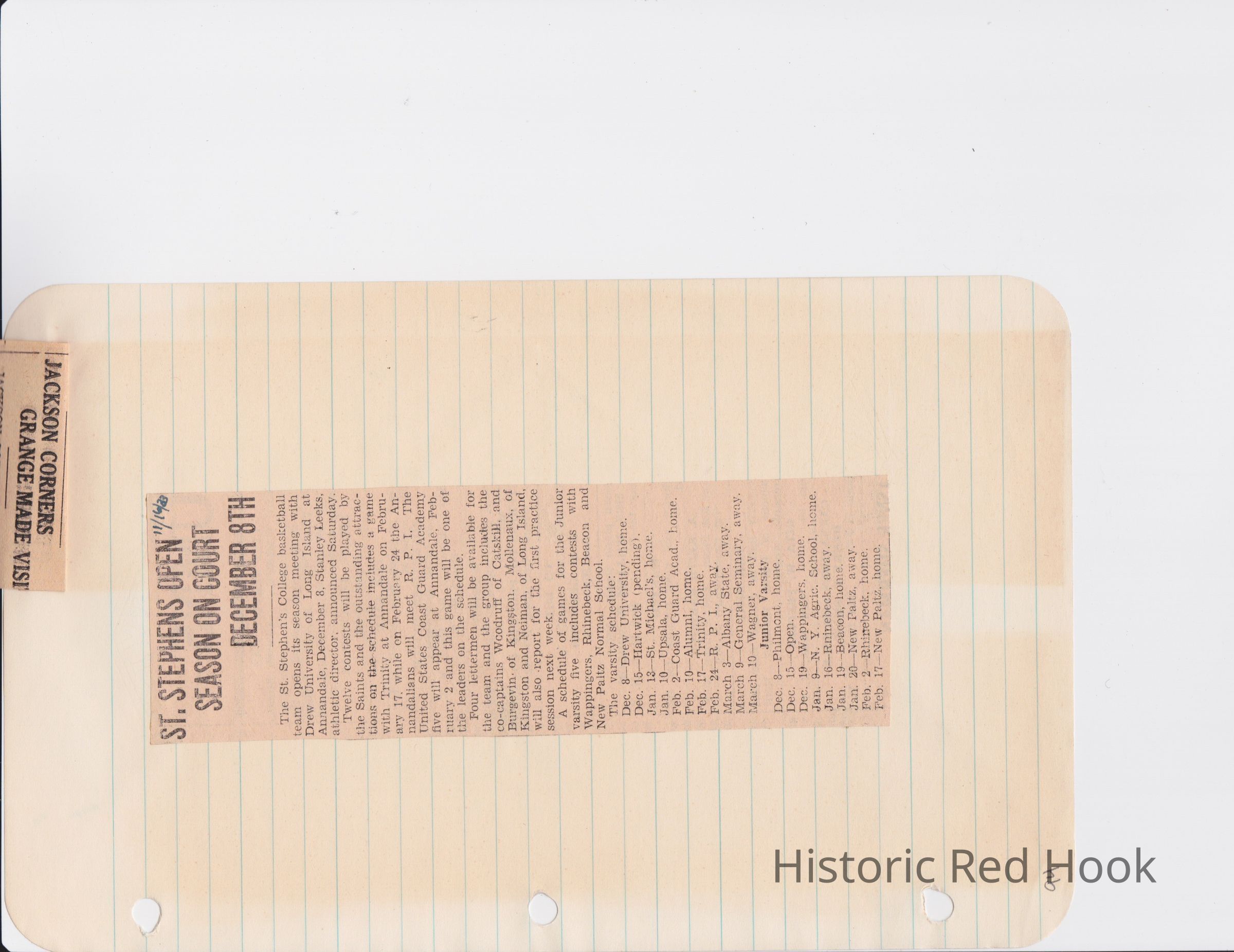 Scrapbook put together by Norman Vogel. It contains newspaper clippings about school news and sports from Red Hook High School 1933-1934. It was given to Patsy Vogel by Norman's widow, Margaret Vogel.