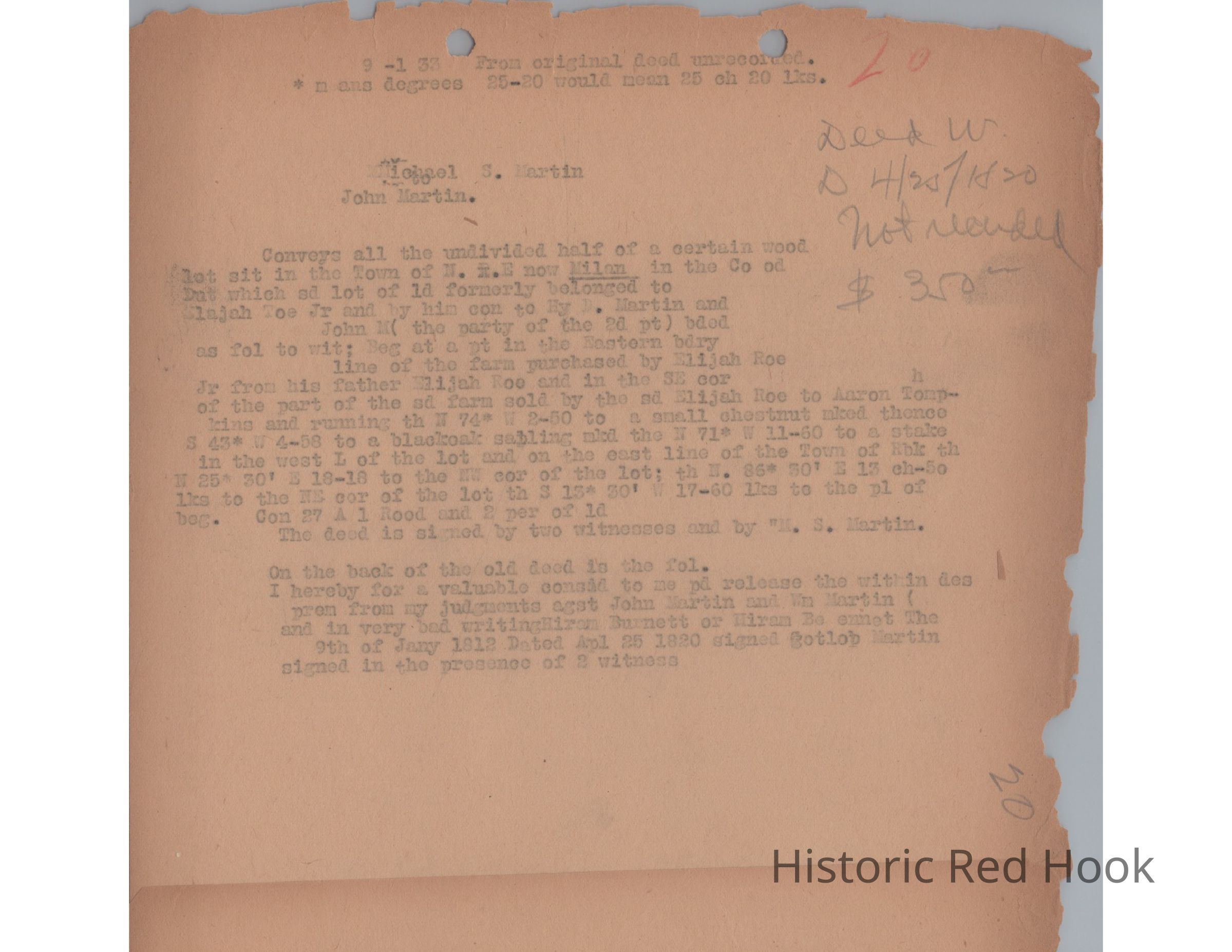 Deed, From Michael S. Martin to John Martin, 1820Entry/Object ID