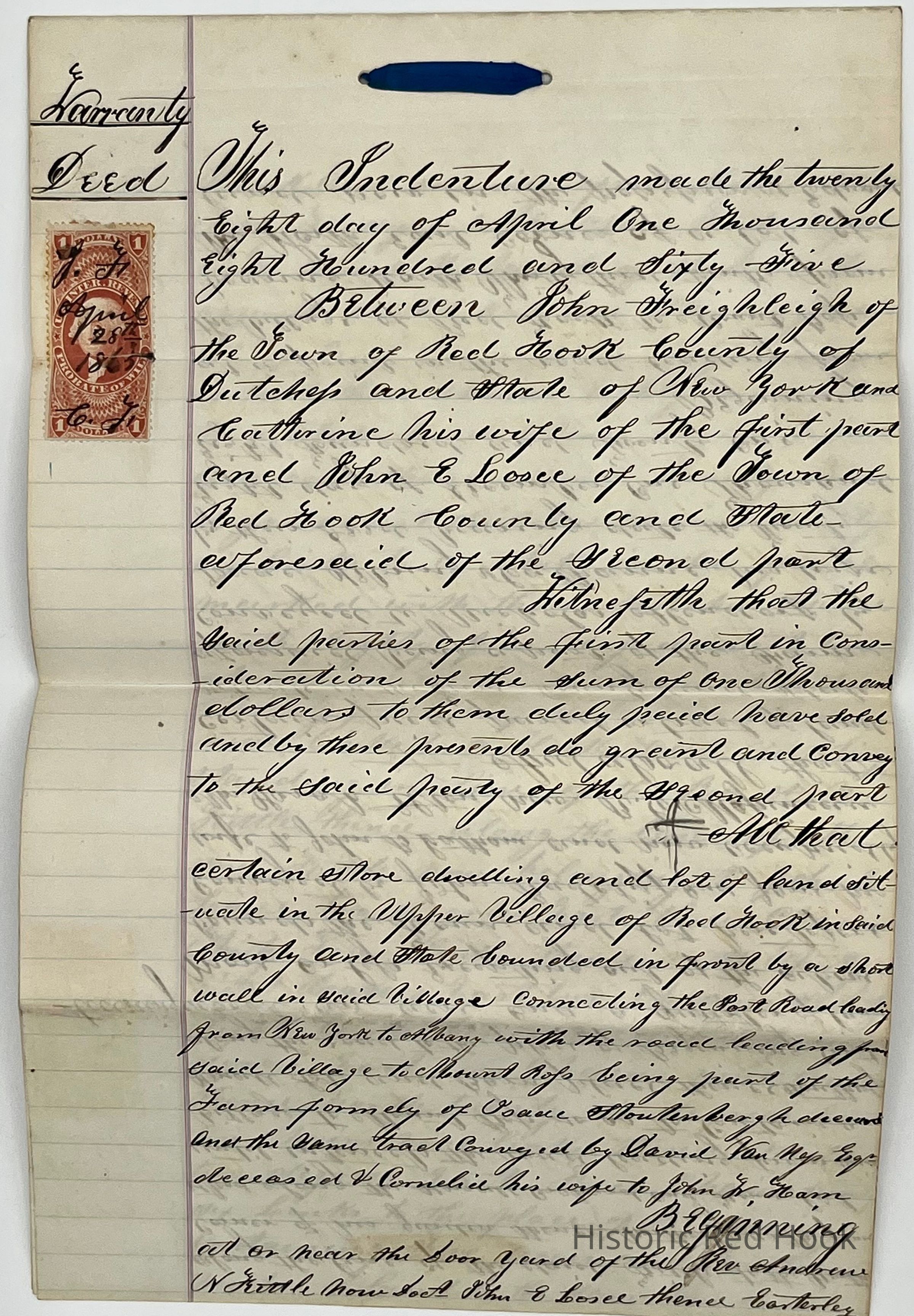 Thomas House Deed, John Freighleigh (Fraleigh) & Catherine his wife to John E. Losee, April 28, 1865Collection