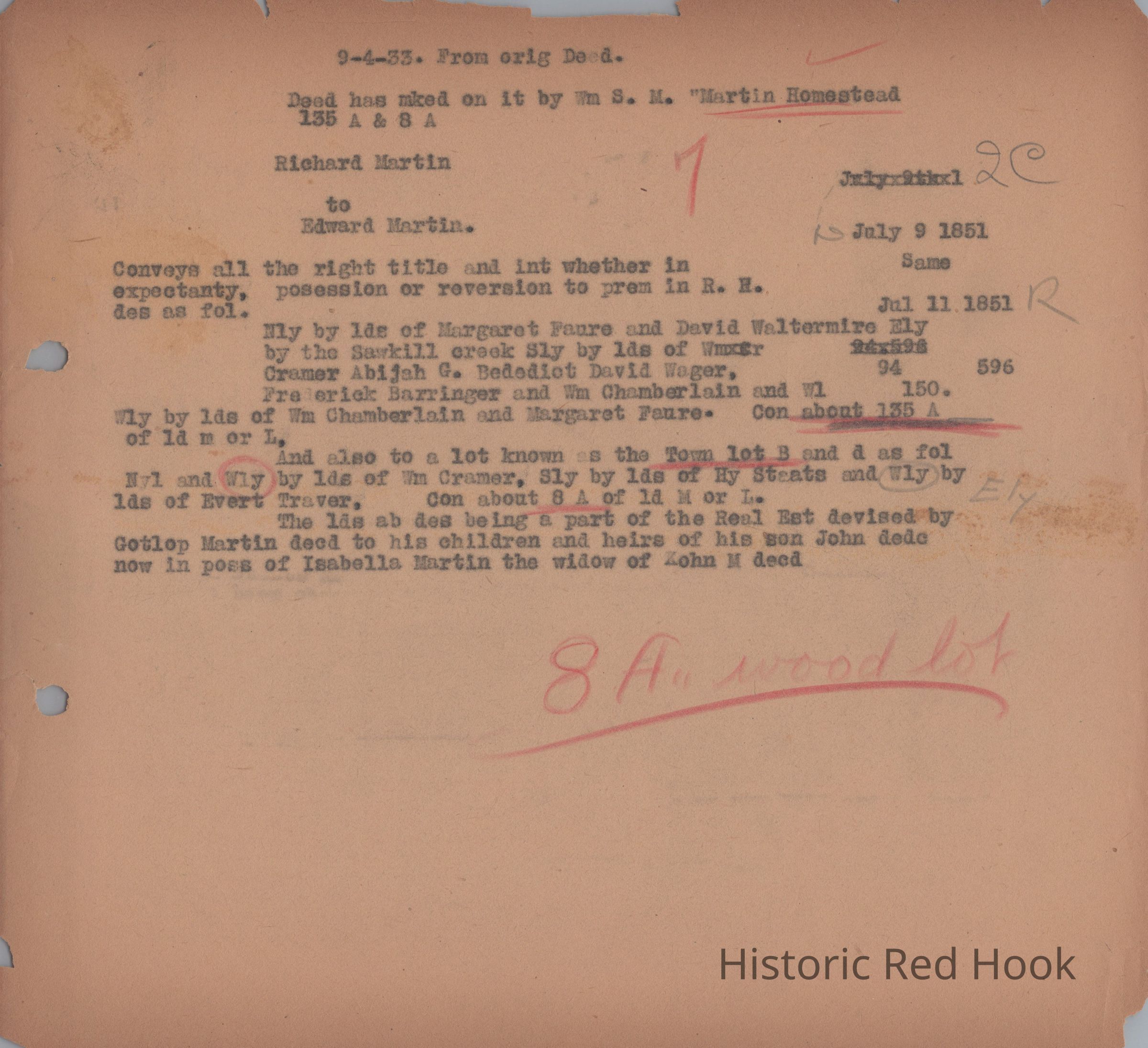Transcription of Deed from Richard Martin to Edward Martin, July 9, 1851, "lands being a part of the real estate devised by Gotlob Martin deed to his children.."Relationships