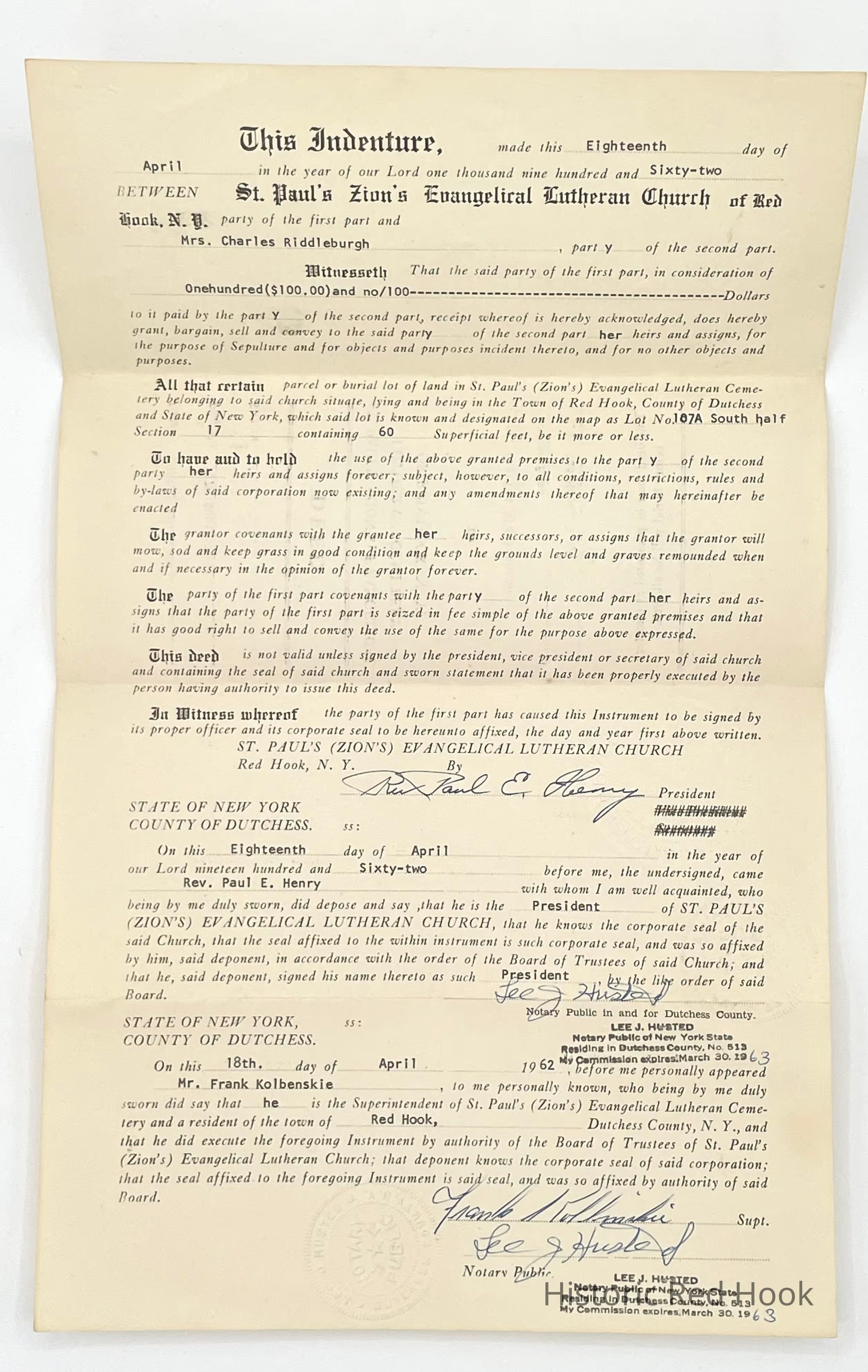 Deed to Cemetery Plot (St. Paul's and Elizabeth Riddleburgh)Entry/Object ID