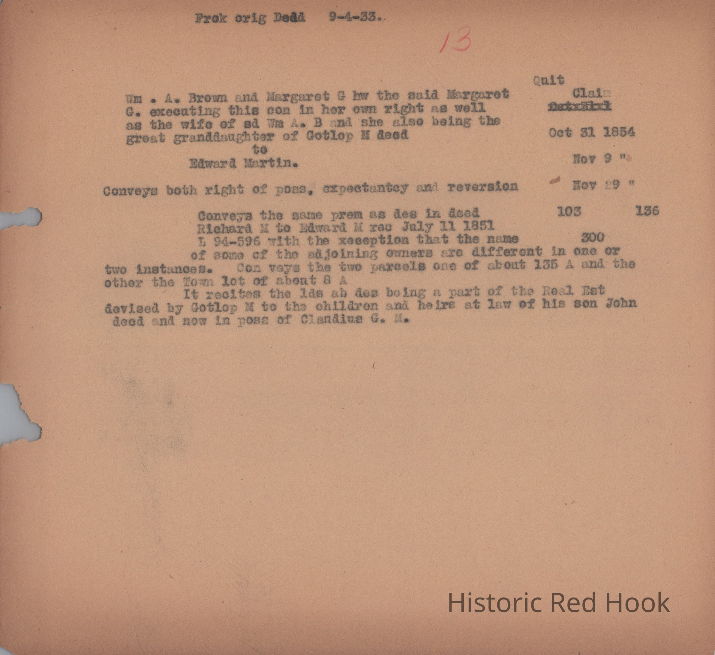 Transcription of Deed from William A. Brown and Margaret G to Edward Martin, October 31, 1854Relationships