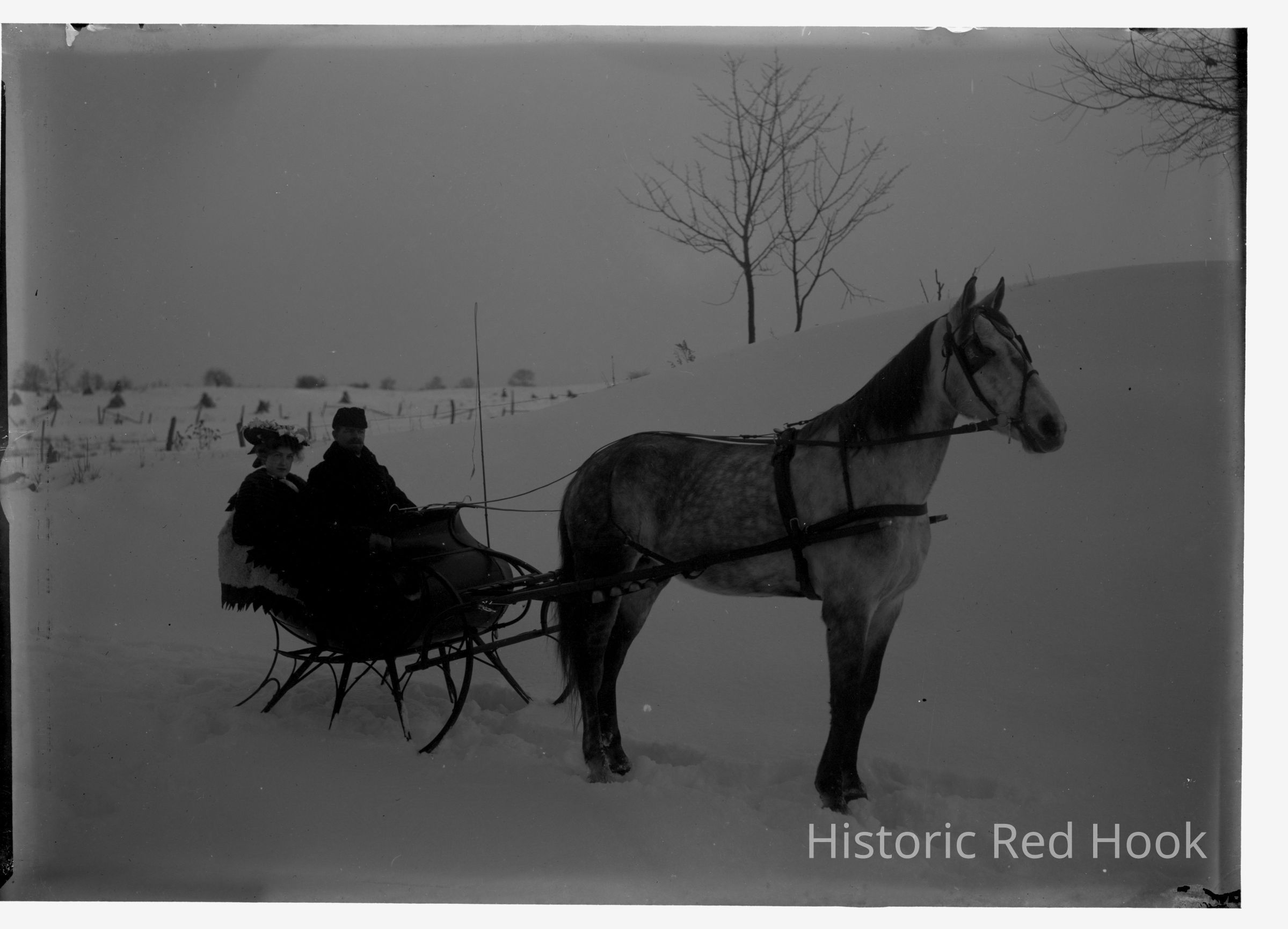 Dr. Hain & Adelaide "Addie" Elting in a horse-drawn sleigh in the snowPhotograph Details