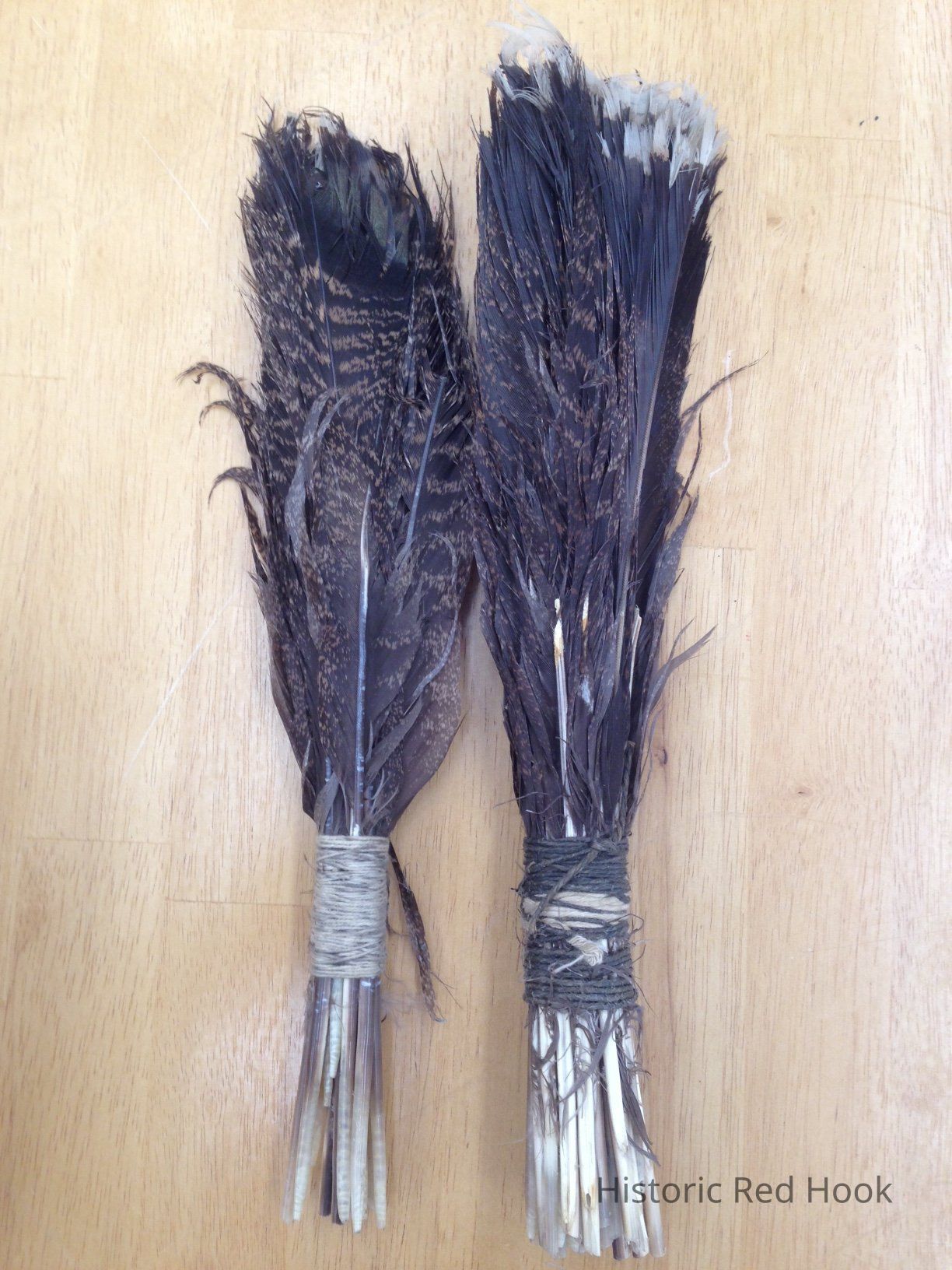 2 feather dusters, made of turkey feathers, Note attached stating: belonging to Oliver Rider"s grandmother, Catherine Rowe, "at least 60 years old"