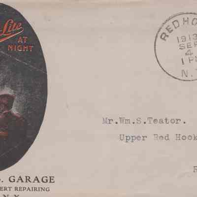 Traver Bros. Garage invoice, dated June 2, 1913 and envelope, postmarked June 24, 1913, addressed to Wm. S. Teator for the March 28 purchase of six batteries for $1.50.Relationships