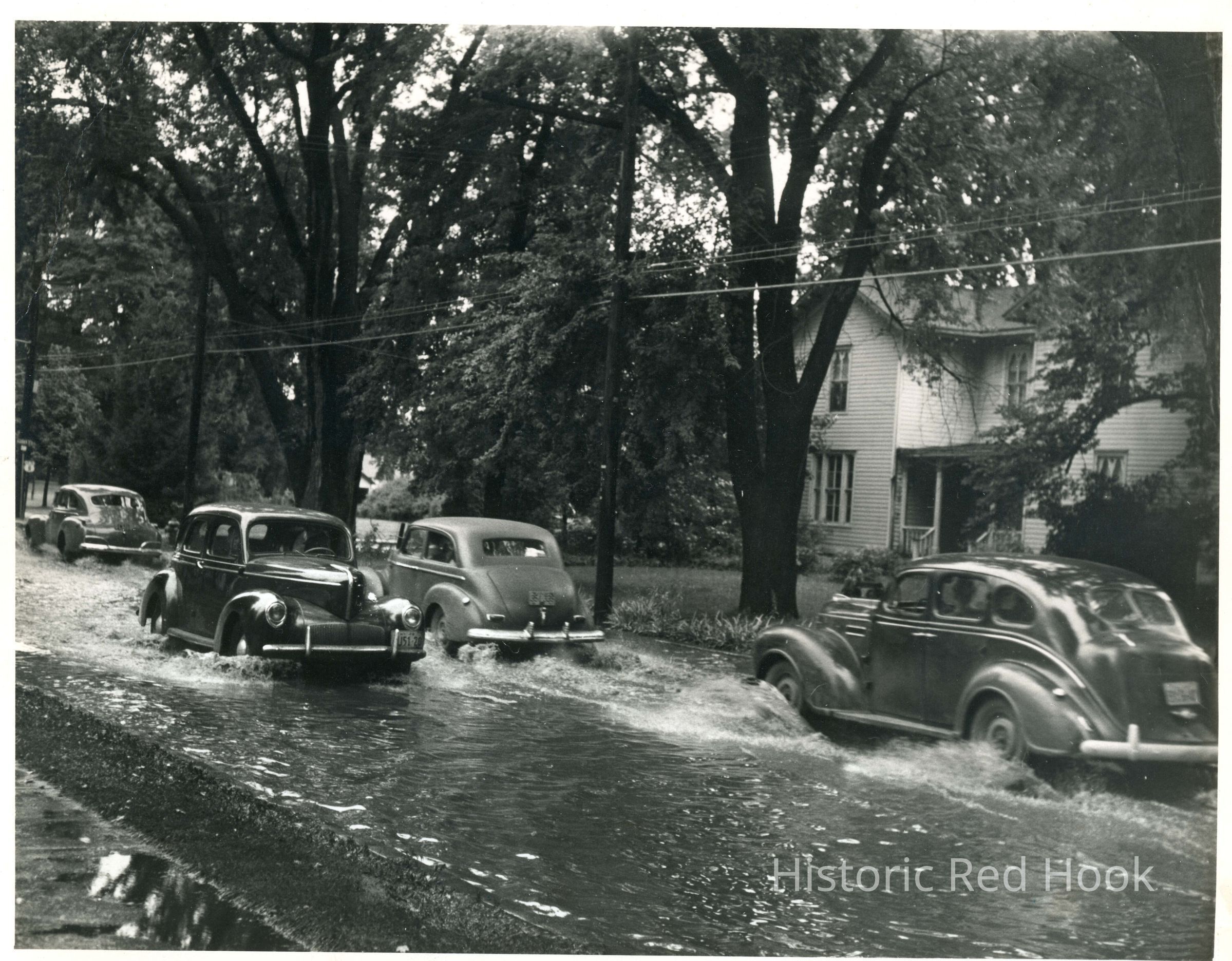 Cars driving through flood on South Broadway, Sept. 1946Photograph Details