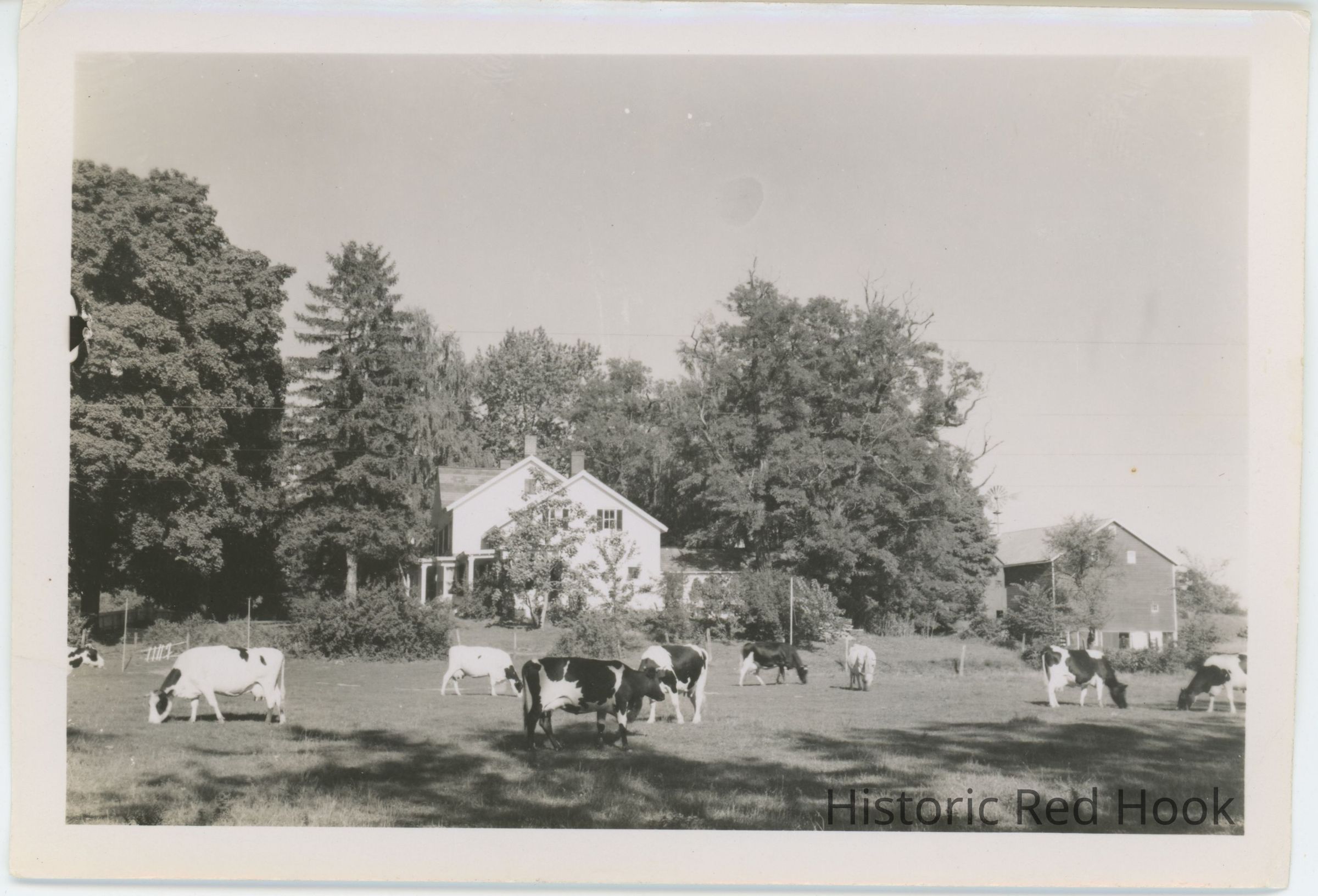 Echo Valley Farm, Sept 1949, looking east from the Sawkill at the farm's Holstein cows.Photograph Details