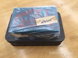 rusted Tobacco tin, paper inside box, titled "the Red Hook Tobacco", Hoffman and Co., Red Hook. William B. Hoffman. Other names associated Frank Sheldon, William Traver, William Massonneau. Opposite side of paper - photocopy of photo of 'Tobacco & Cigar Manufactory'Collection