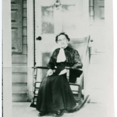 Three men cutting and havesting ice on a farm pond, circa 1900.