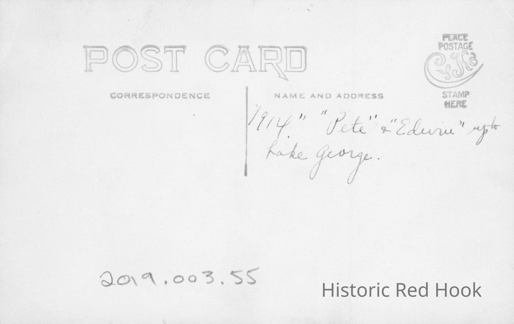 Postcard photograph picturing Edwin Losee with a young man identified as "Pete" taken at Lake George ca 1914.Photograph Details