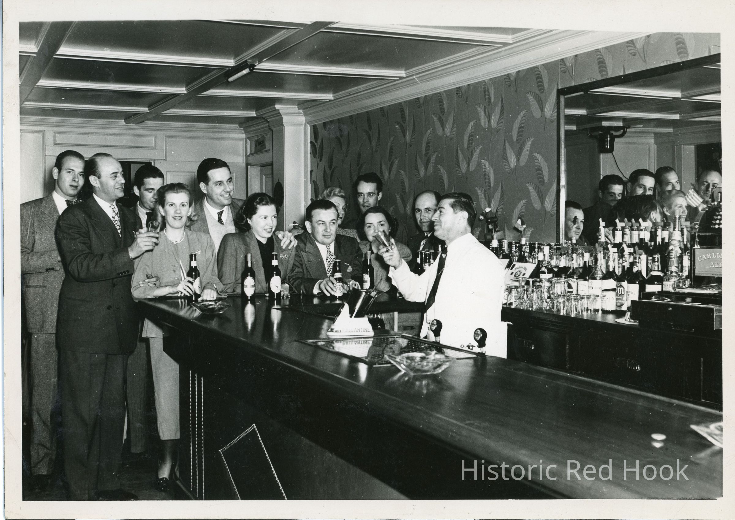 Elbow Room, Red Hook Hotel, Bartender Tom Malone with Bard College studentsPhotograph Details