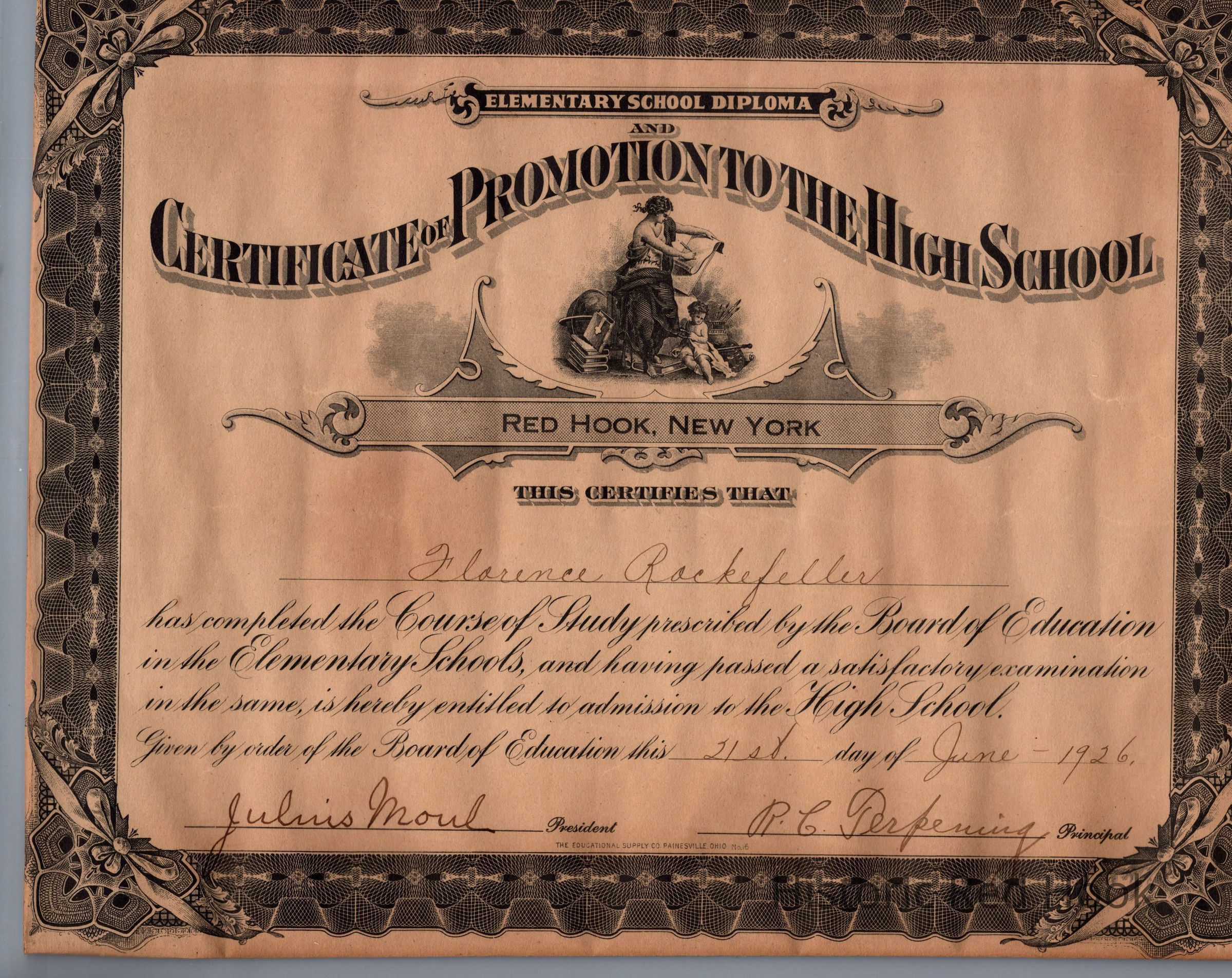Elementary School Diploma, Florence Rockefeller, 1926Entry/Object ID