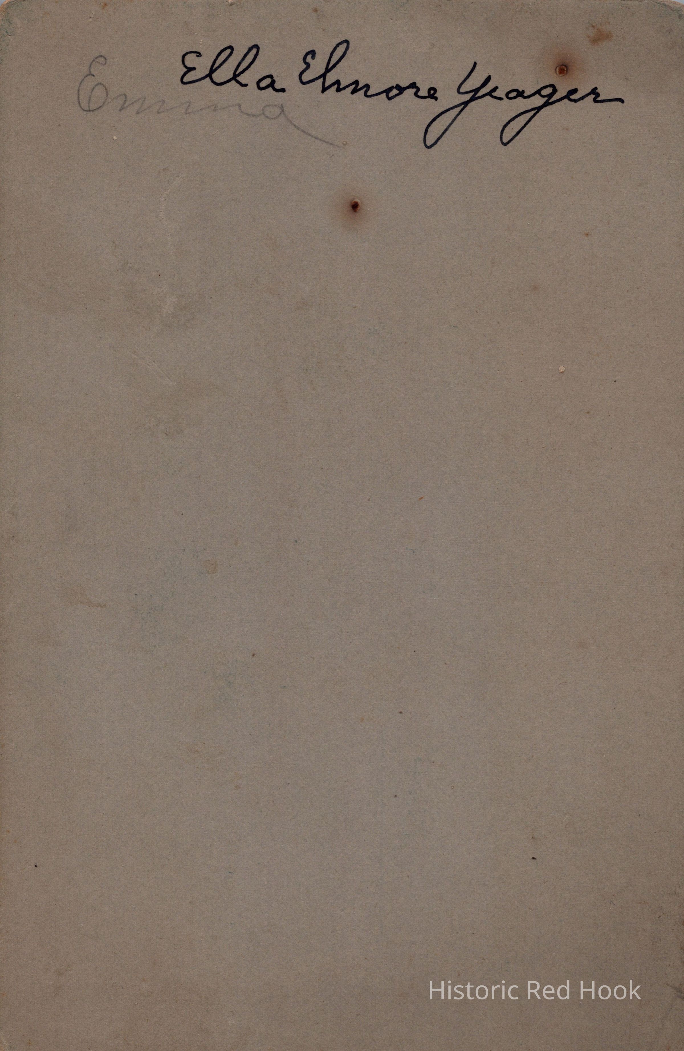 A formal studio portrait of Ella Elmore Yeager.