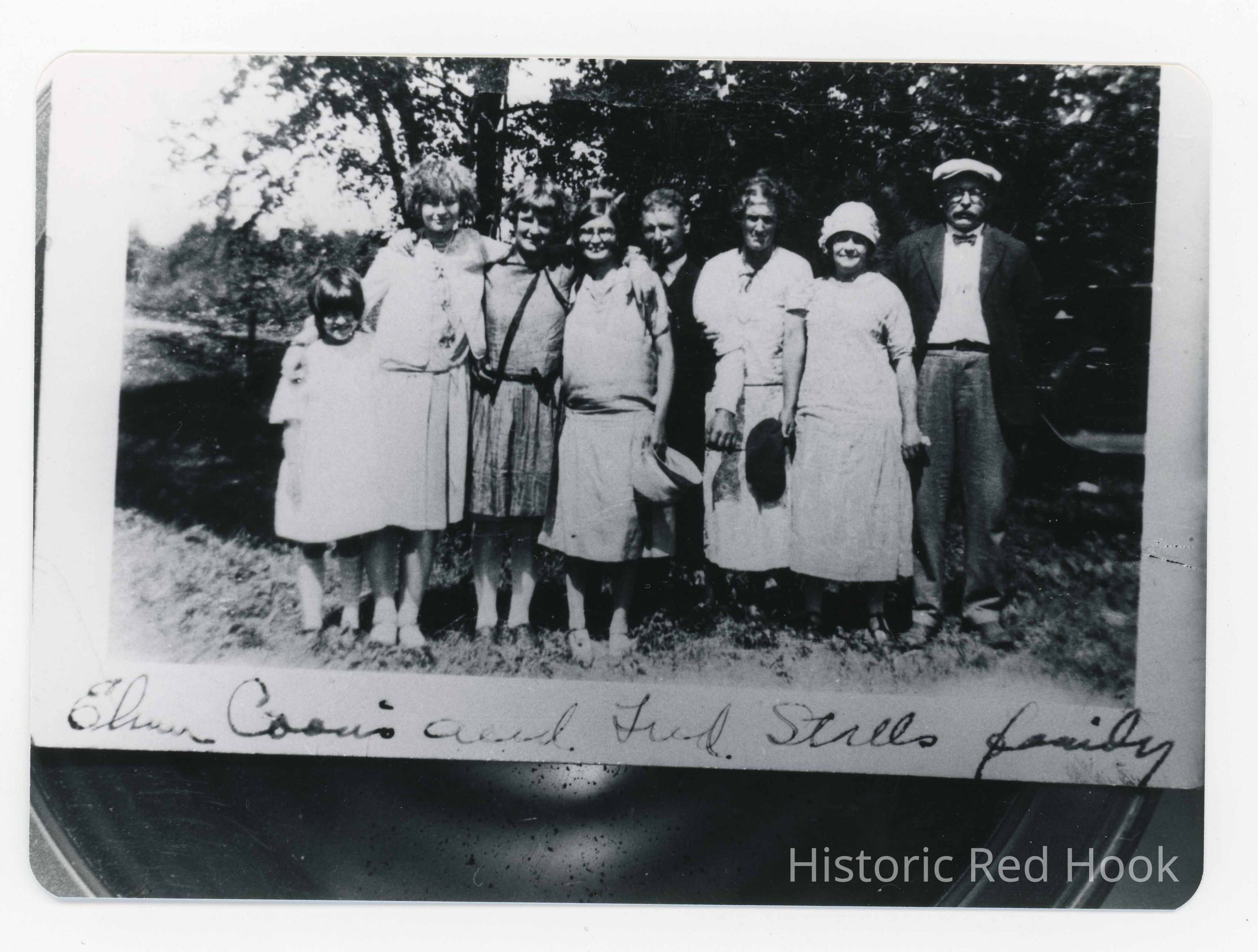 Elmer Coon & Fred Stall family 1926 Written on back - L- R Pat Stall - m. Vincent Frangone 2. ? 3. Anna Coon 4. Evelyn Stall m. Jack Hefferman 5. Elmer Coon 6. Susie Coon 7. Jennie Stall 8. Fred Stall