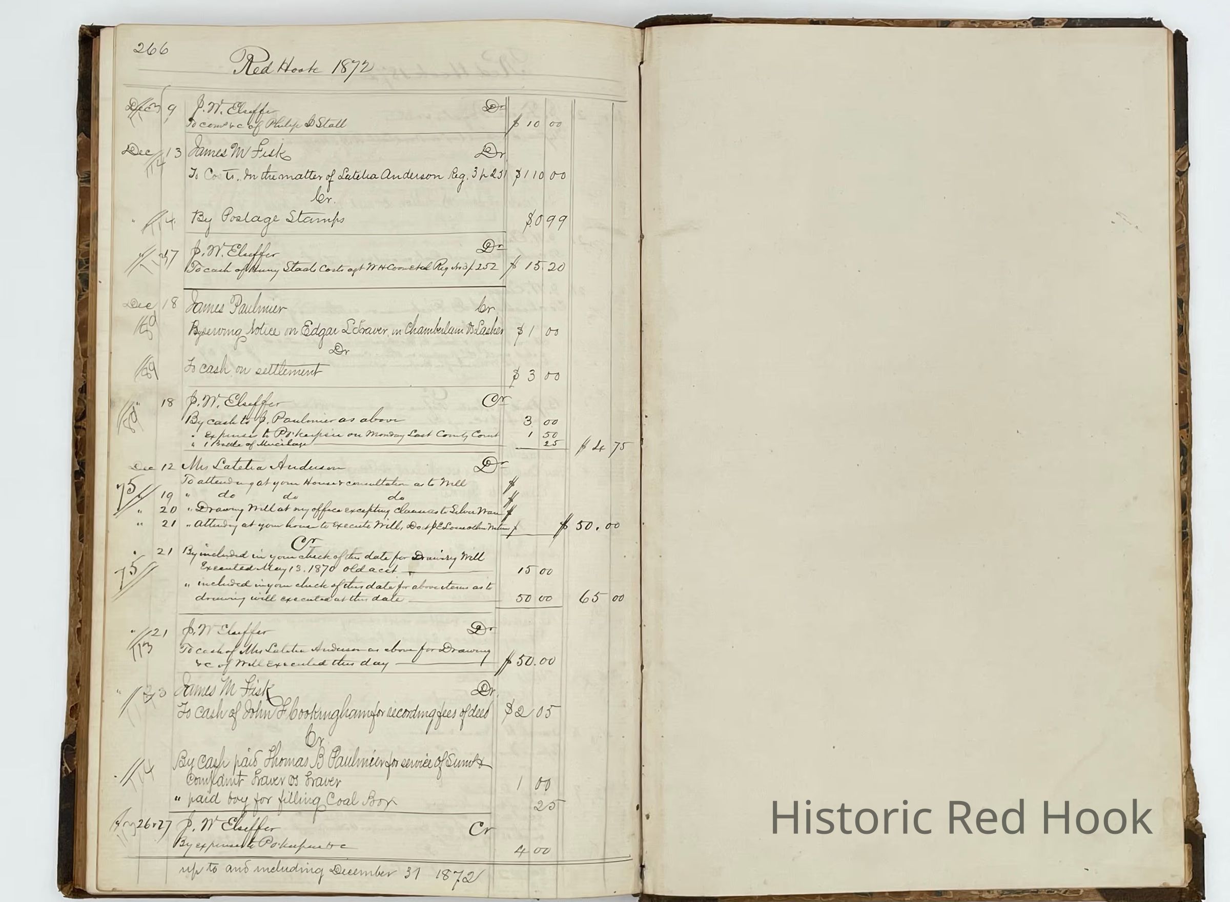 Daybook belonging to Jacob W. Elseffer, used when he was attorney and solicitor for Dutchess County Supreme Court.
