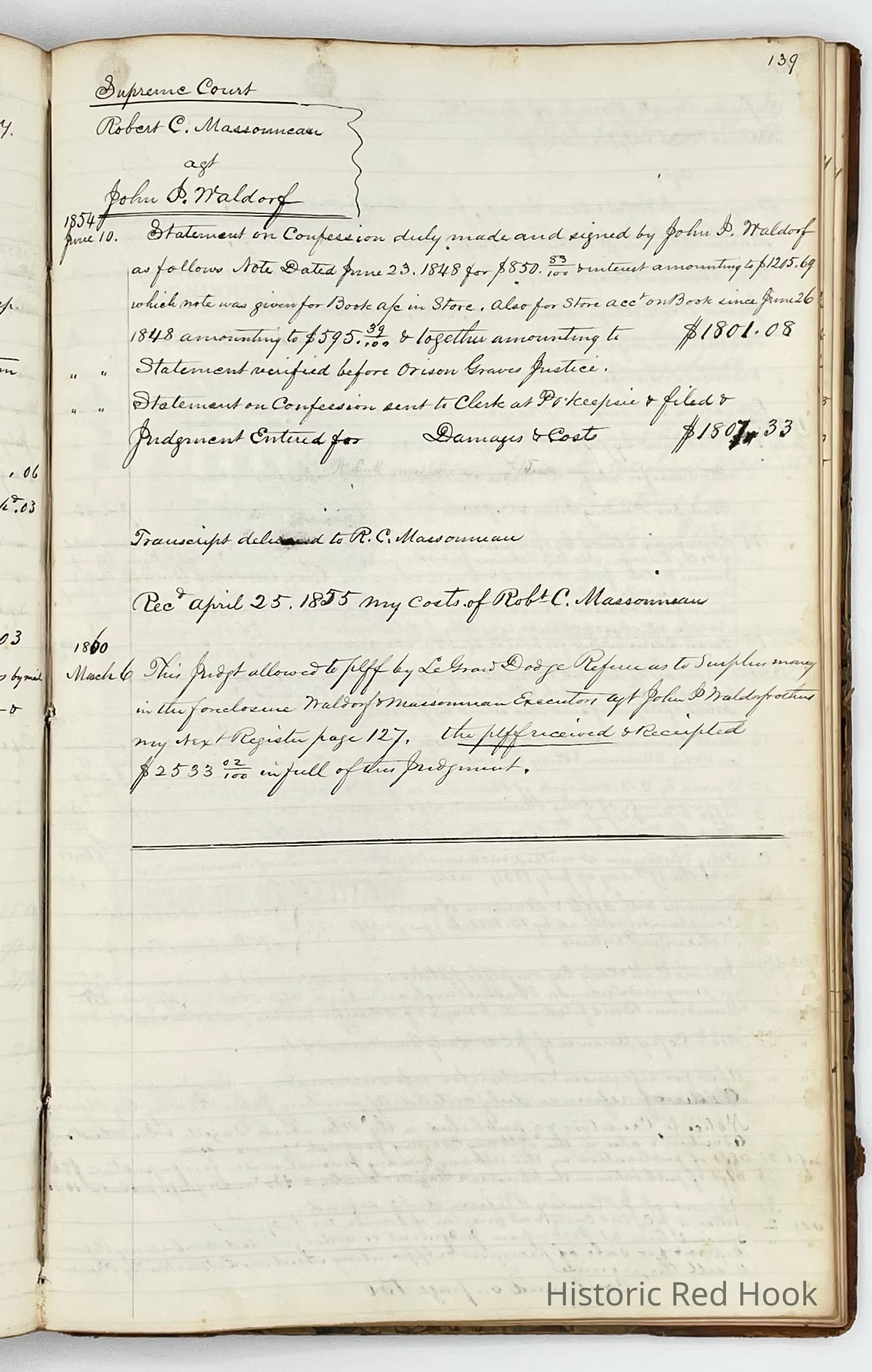 Ledger book belonging to Jacob W. Elseffer, used when he was attorney and solicitor for Dutchess County Supreme Court.