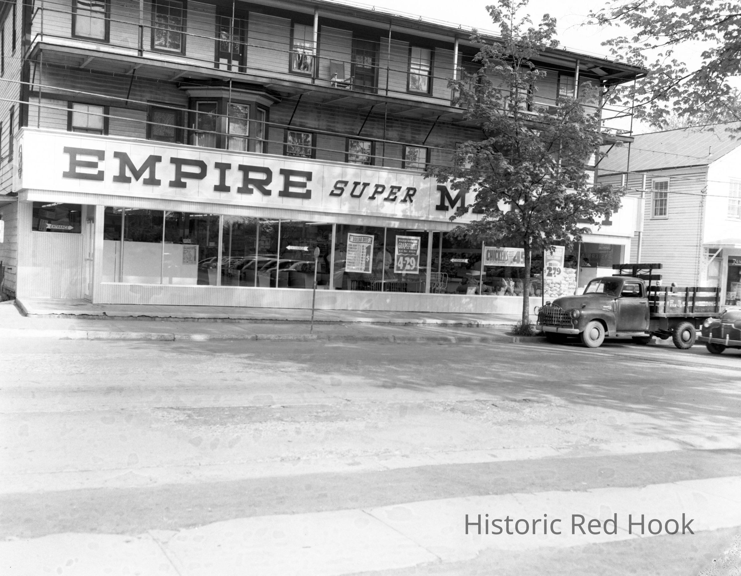 Empire Supermarket, 1954, with truck parked in front.Photograph Details