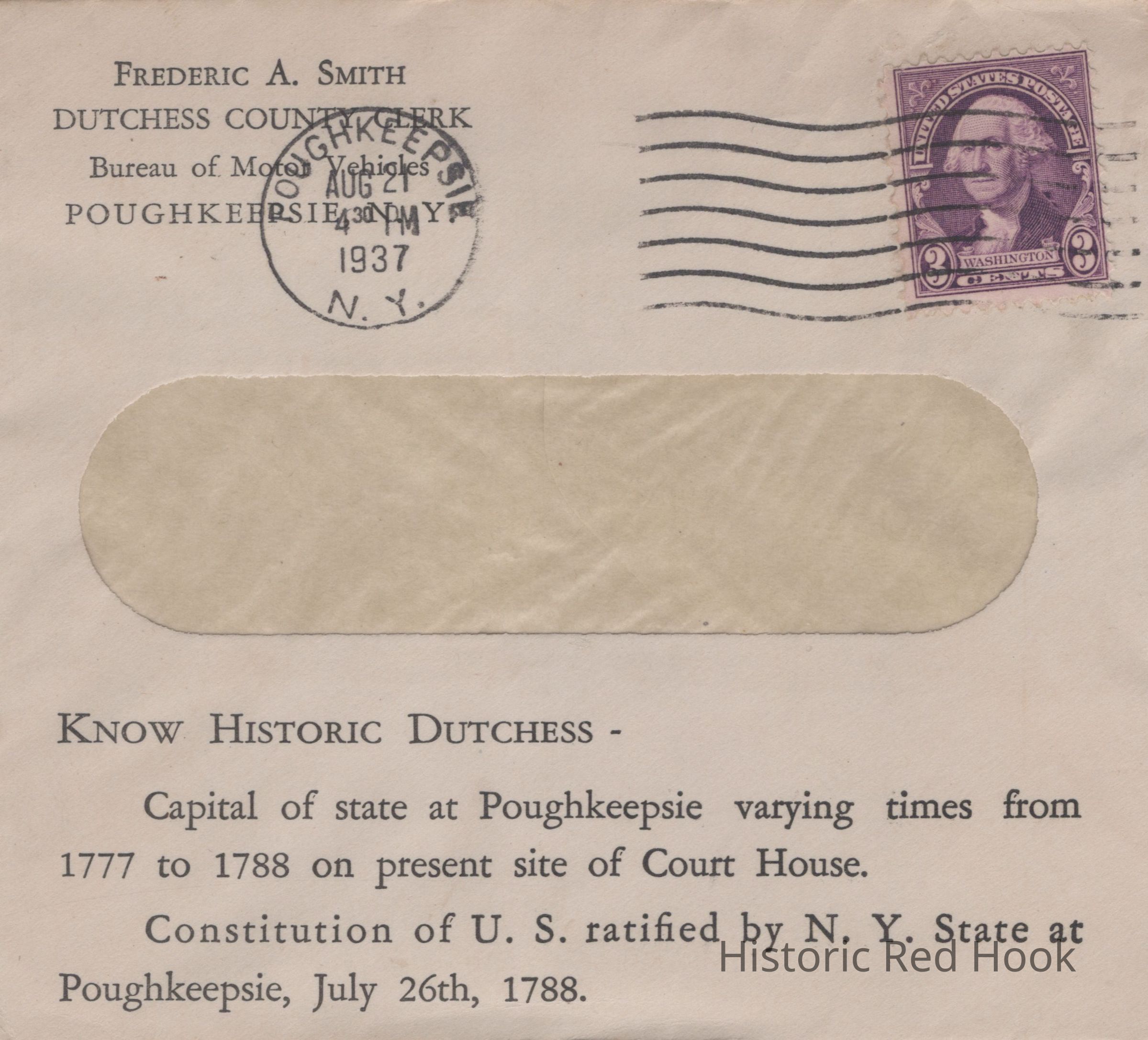 Envelope from Frederic A. Smith, Dutchess County Clerk, postmarked Aug. 21, 1937