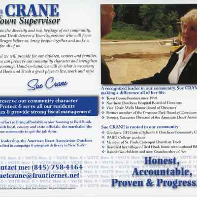 Sue Crane Campaign flyer for Town SupervisorCollection