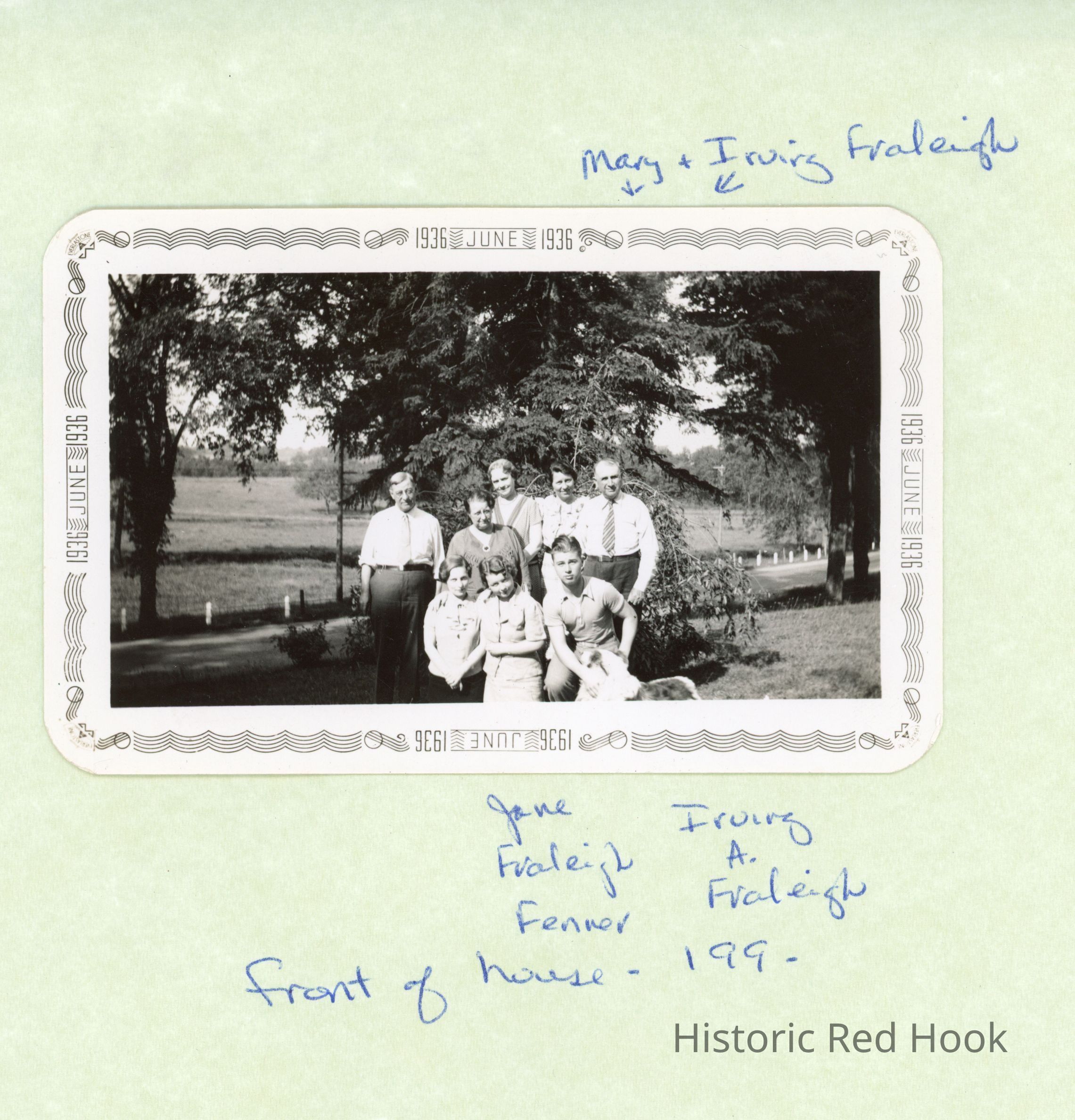 Family photo with Mary and Irving P. Fraleigh, Irving A. Fraleigh and Jane (Fraleigh) Fenner, June 1936