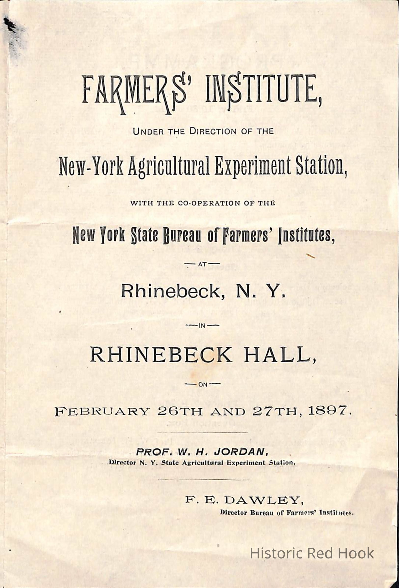 Farmers' Institute at Rhinebeck, N.Y. Program Book for February 26 and 27, 1895 at Rhinebeck HallRelationships