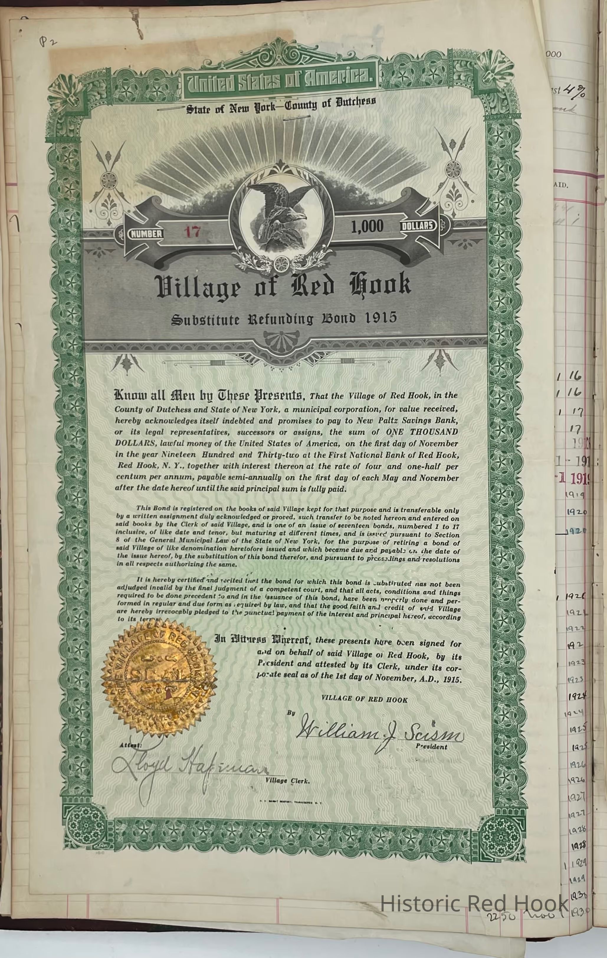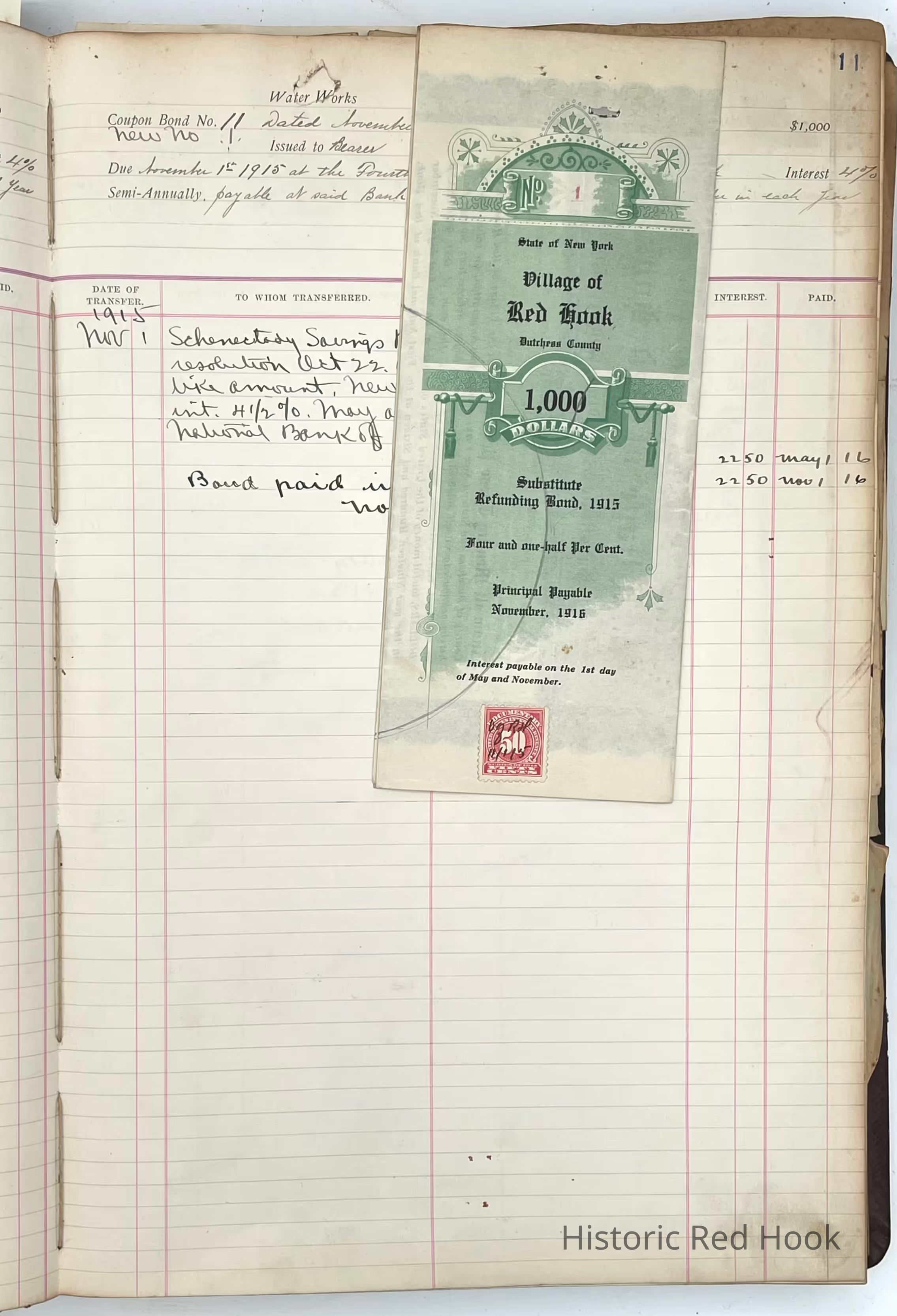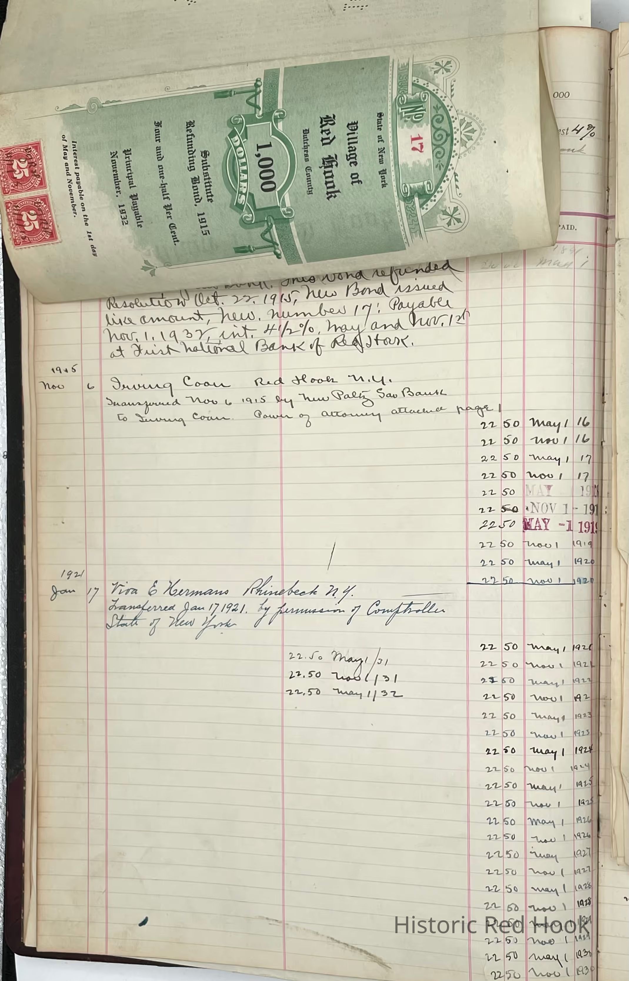 First National Bank Ledger for Water Bonds1915-1919Entry/Object ID