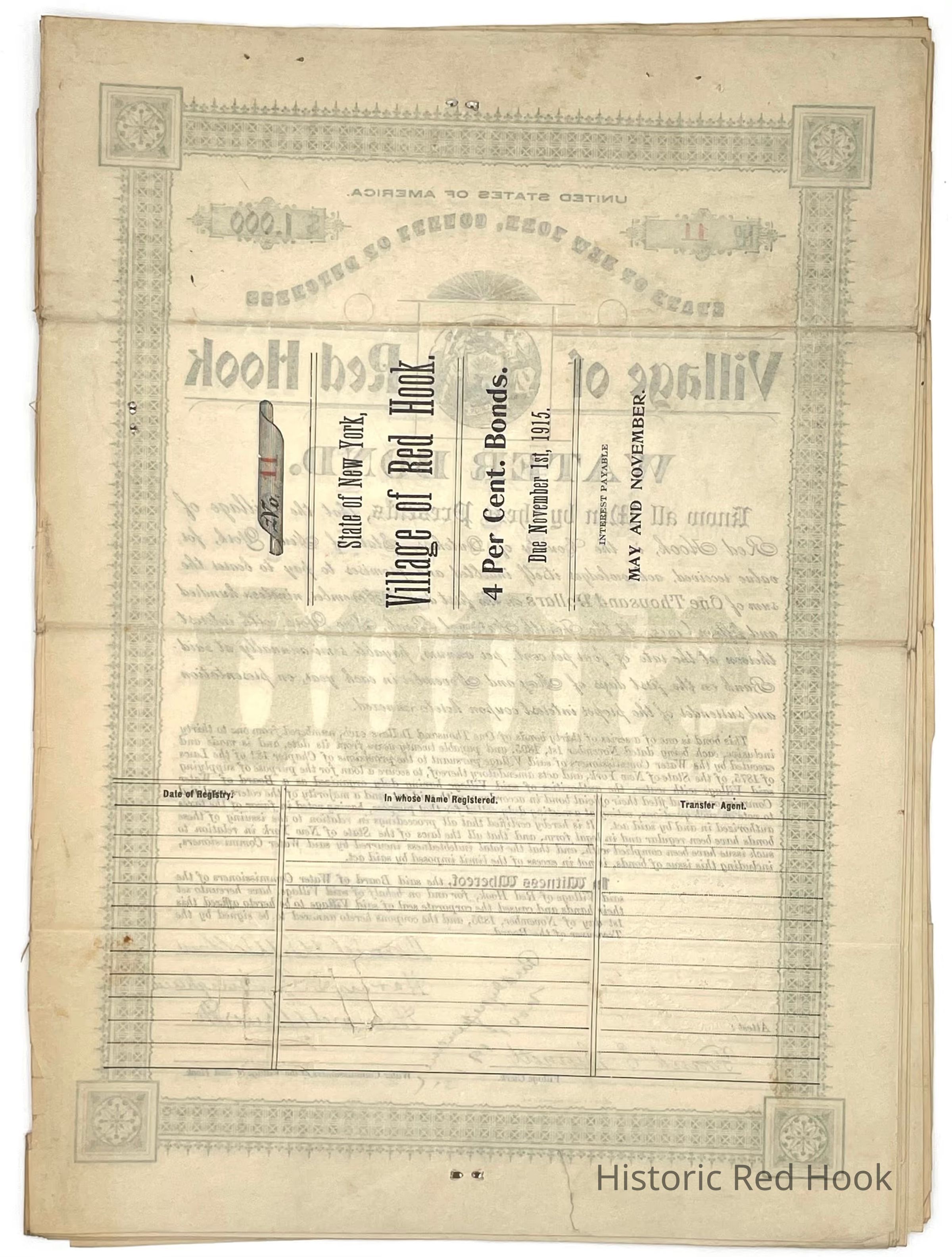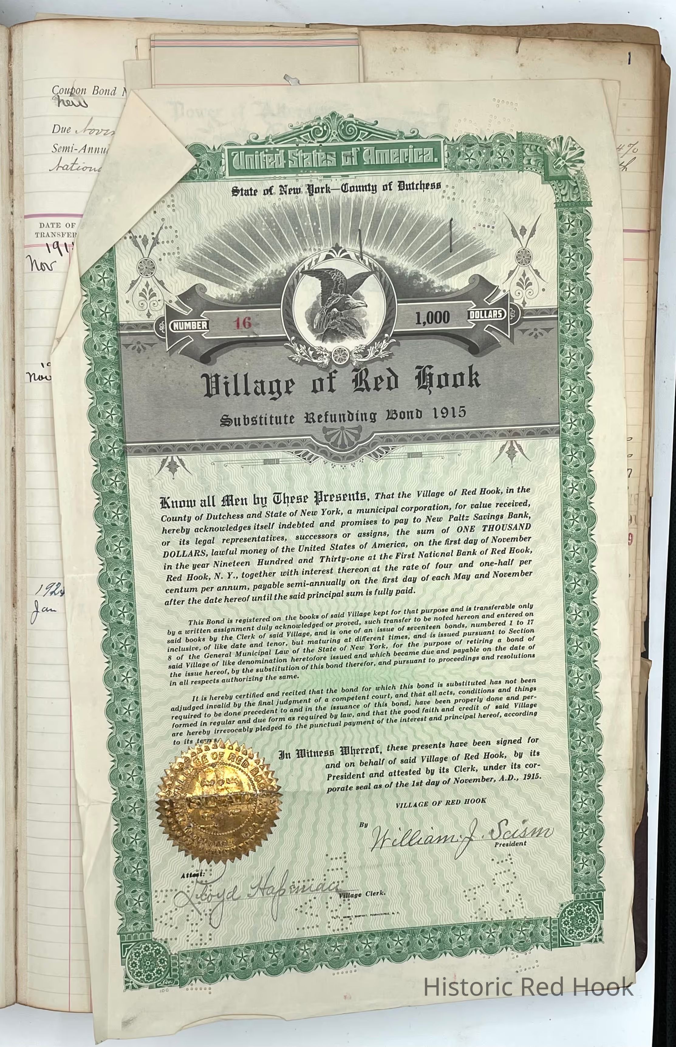 First National Bank Ledger 1915-1919- includes financial records (water works bonds from 1915)as well as letters, meeting notes895-1920s.Collection