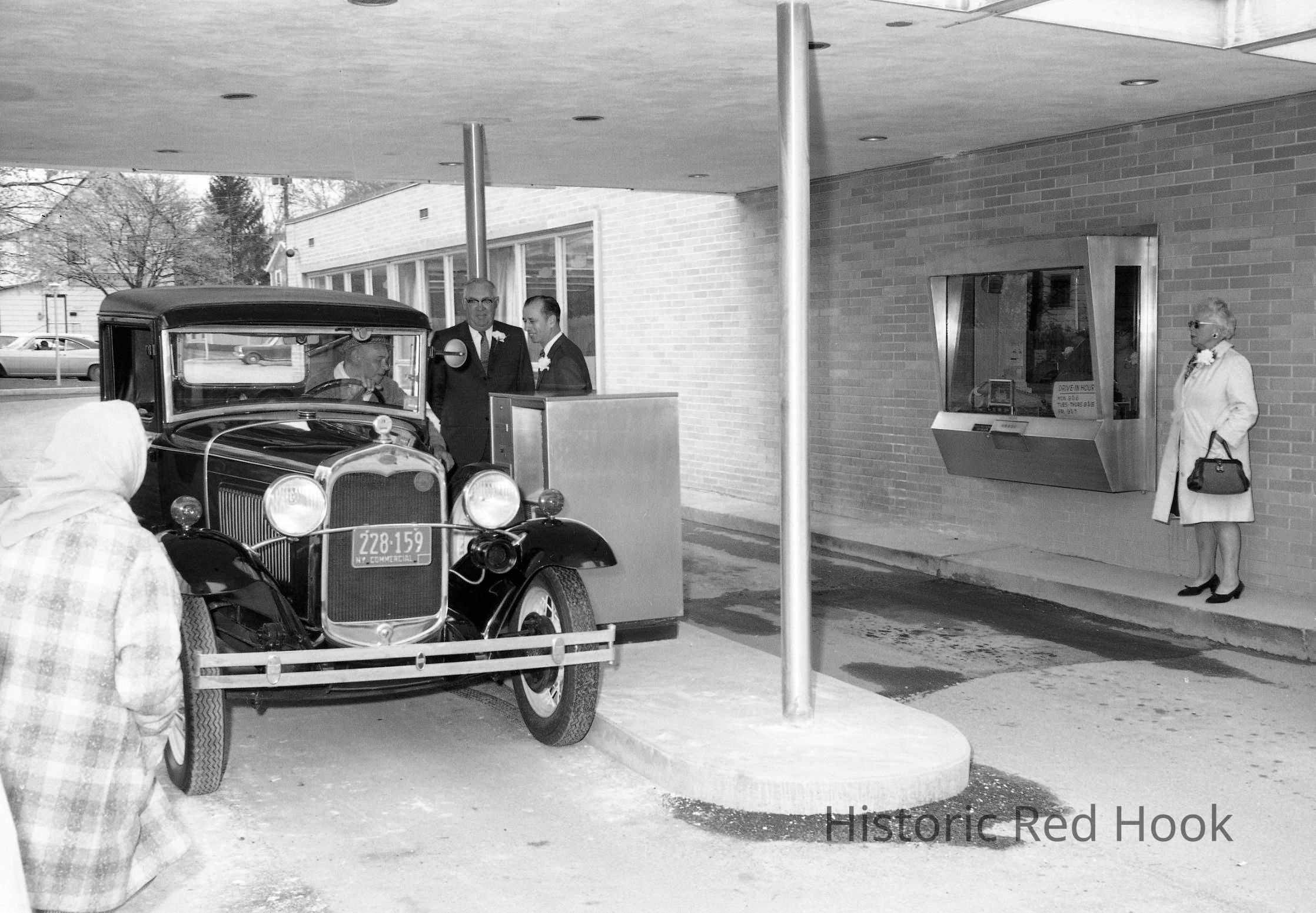 First National Bank, first depositor promotional photo, 1960, slightly different view.Photograph Details