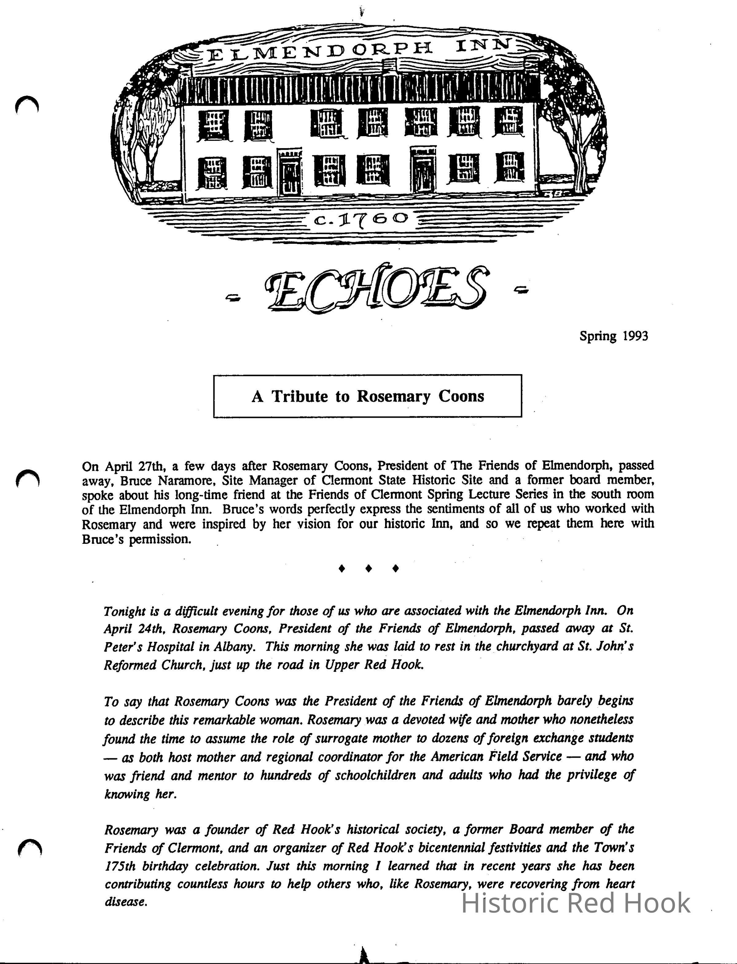 FOE Echoes Newsletter, Spring 1993Entry/Object ID