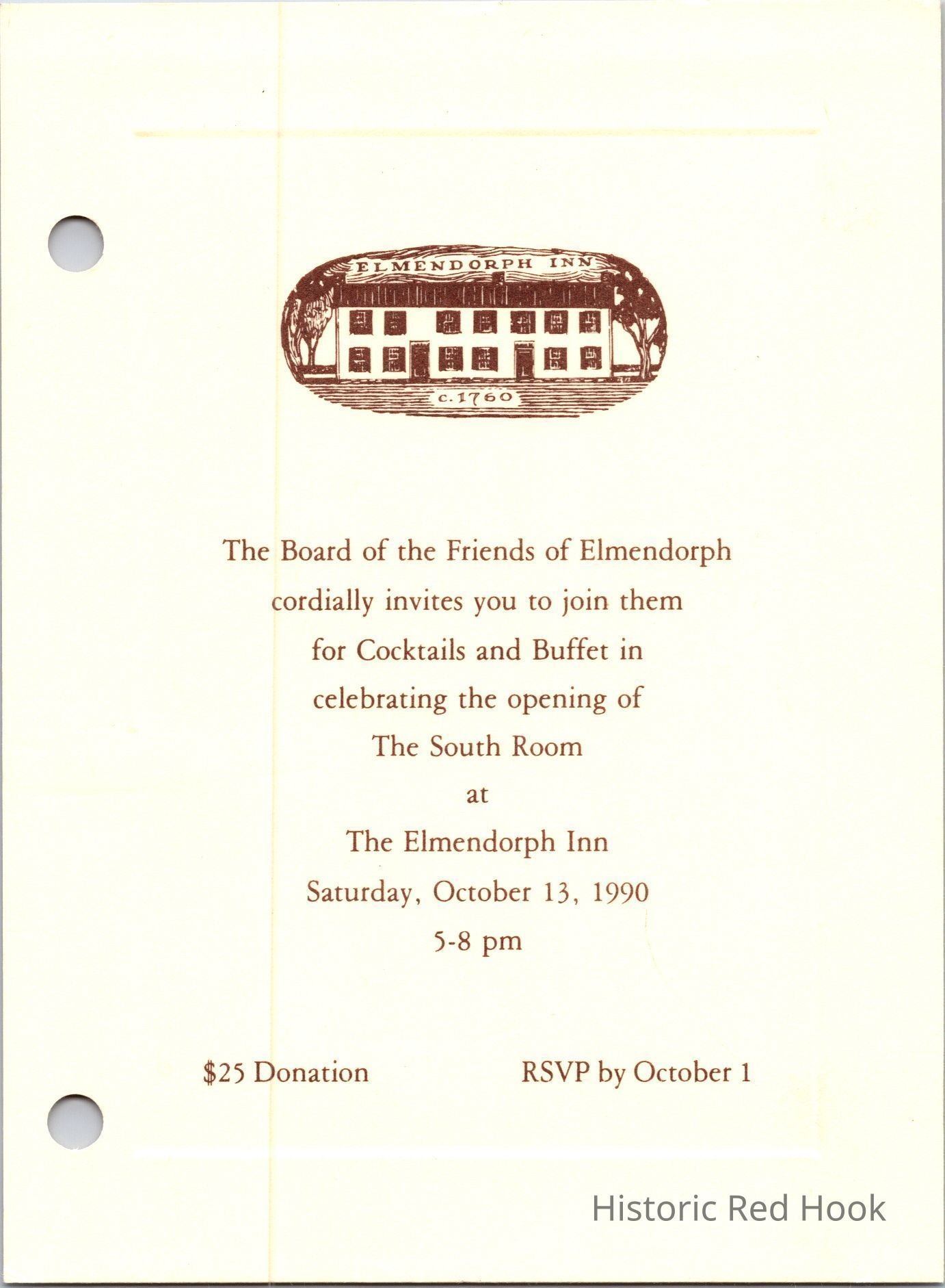 FOE invitation to the Elmendorph Inn, 1990Entry/Object ID