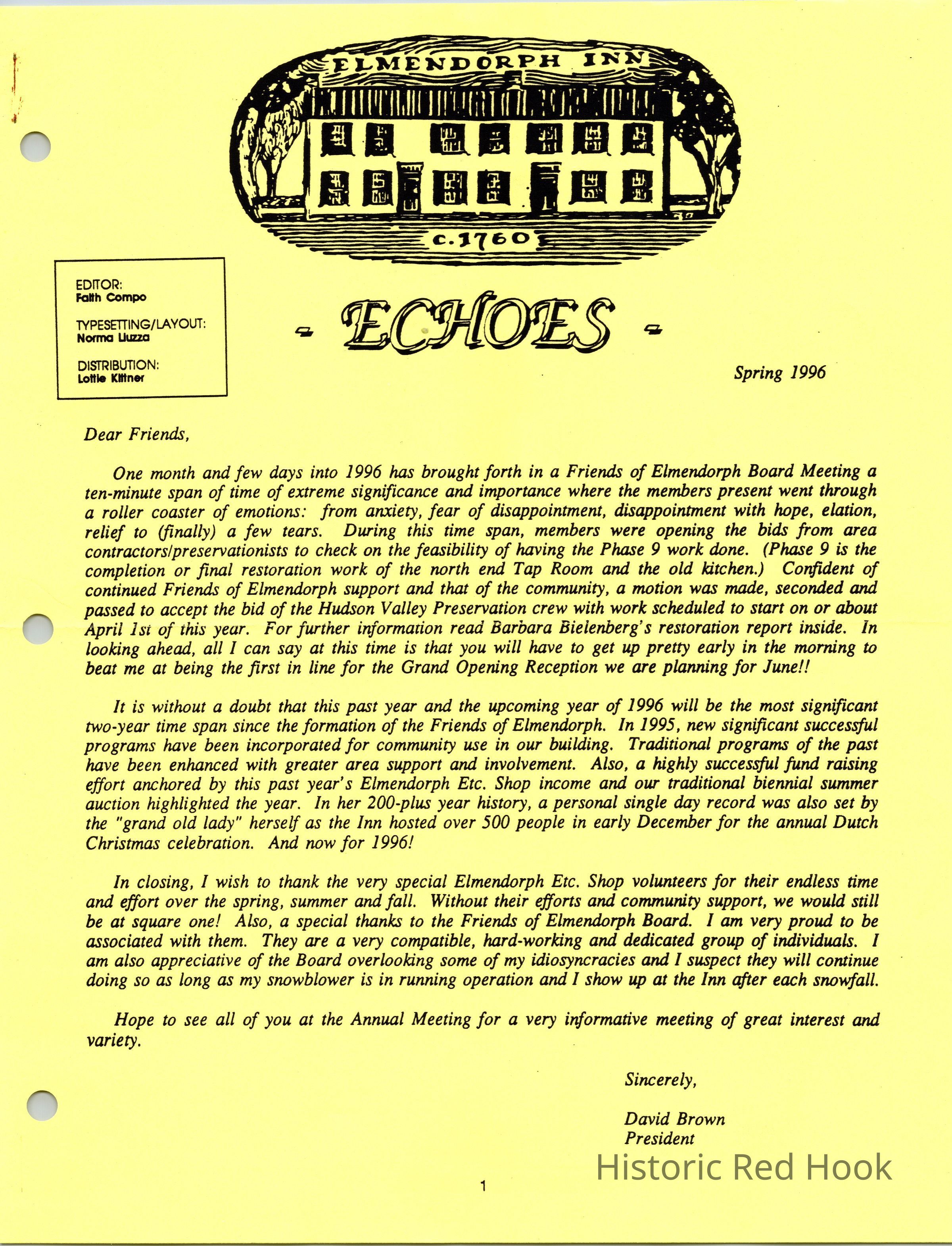 Newsletter created for the membership of the Friends of the Elmendorph.