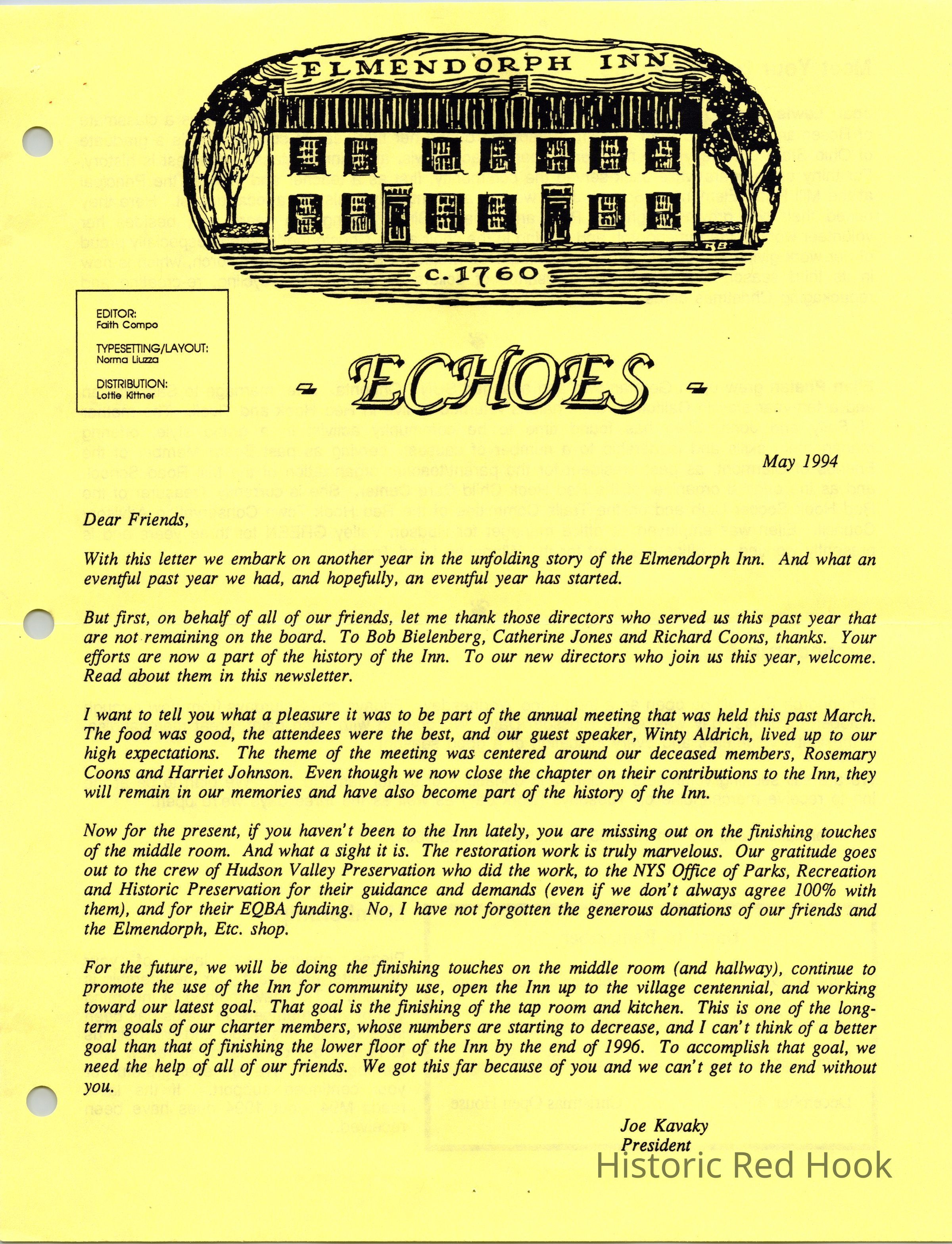 Newsletter created for the membership of the Friends of the Elmendorph.