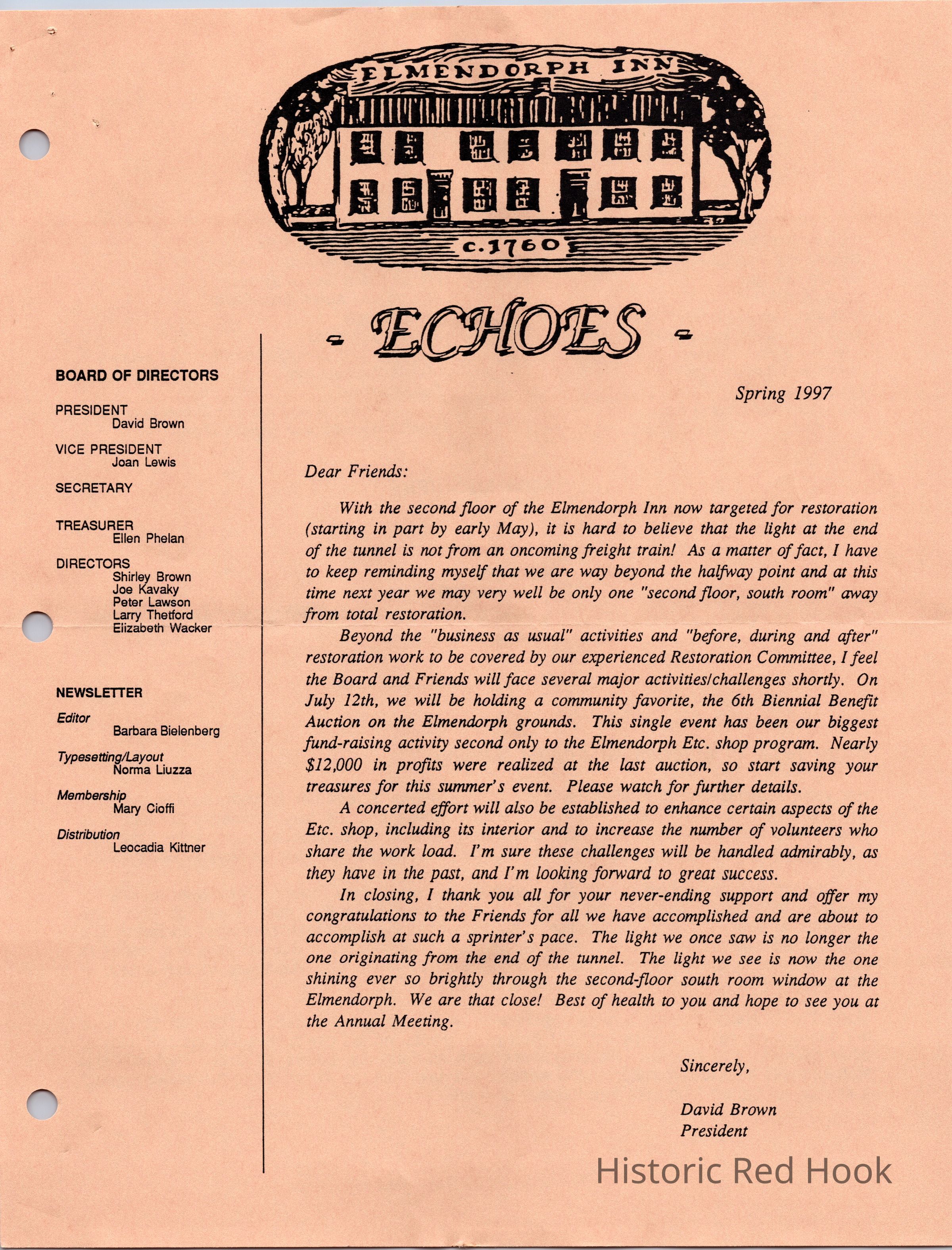 Newsletter created for the membership of the Friends of the Elmendorph.