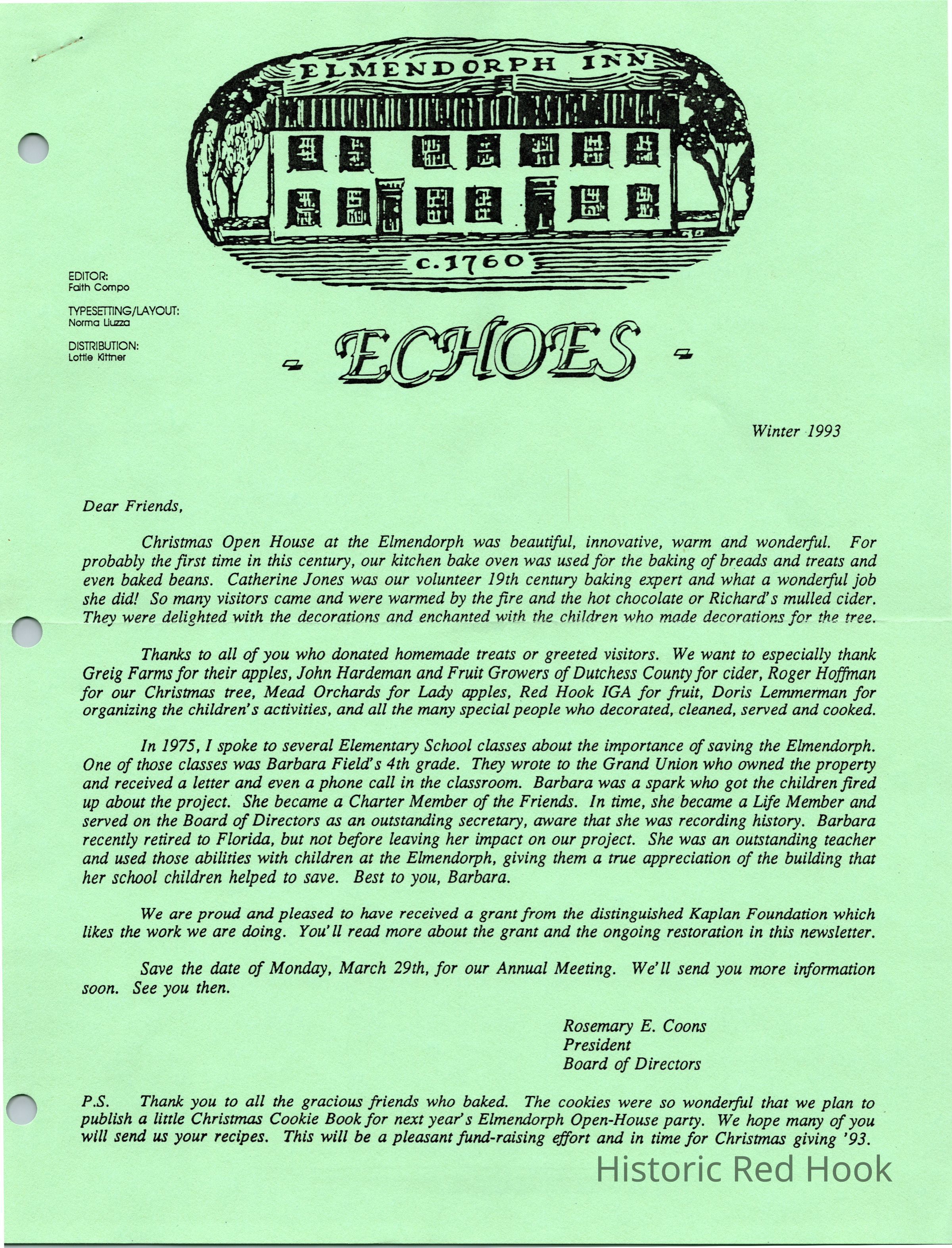 FOE Newsletter Echoes, Winter 1993Entry/Object ID