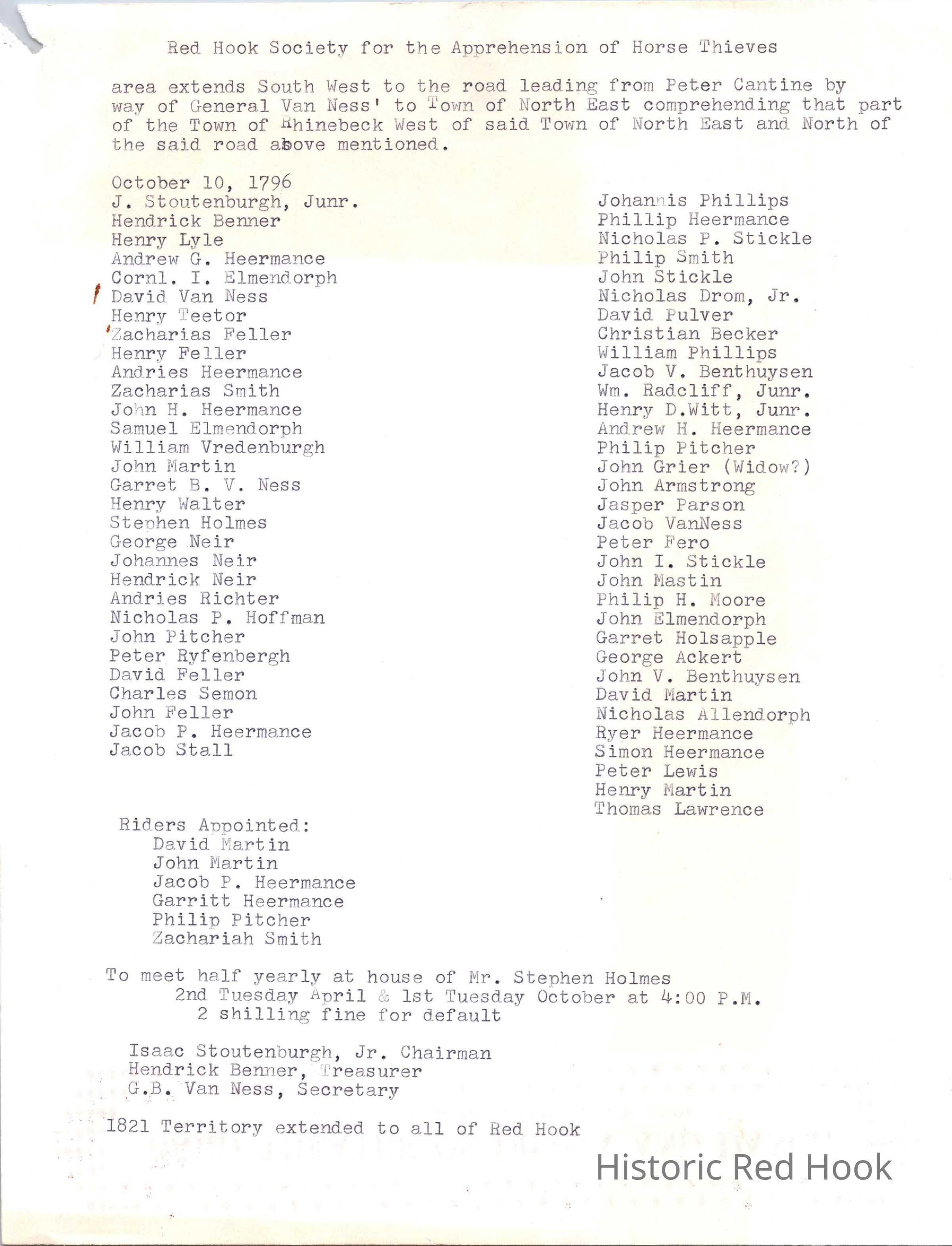 Original founding member list of the Upper Red Hook Society for the Apprehension and Detention of Horse Thieves (1796-1855).Collection