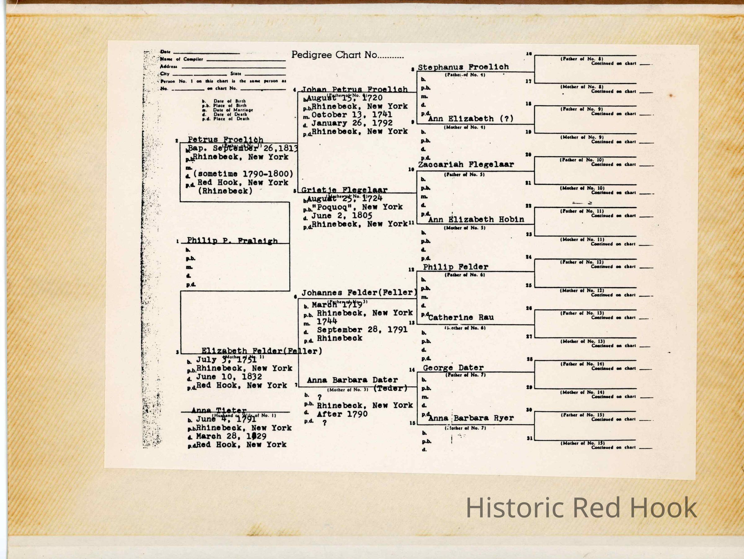 Fraleigh family tree created by Stephen Budd, his written history of Fraleigh ancestors and a clipping about Palatine immigrants to the area.
