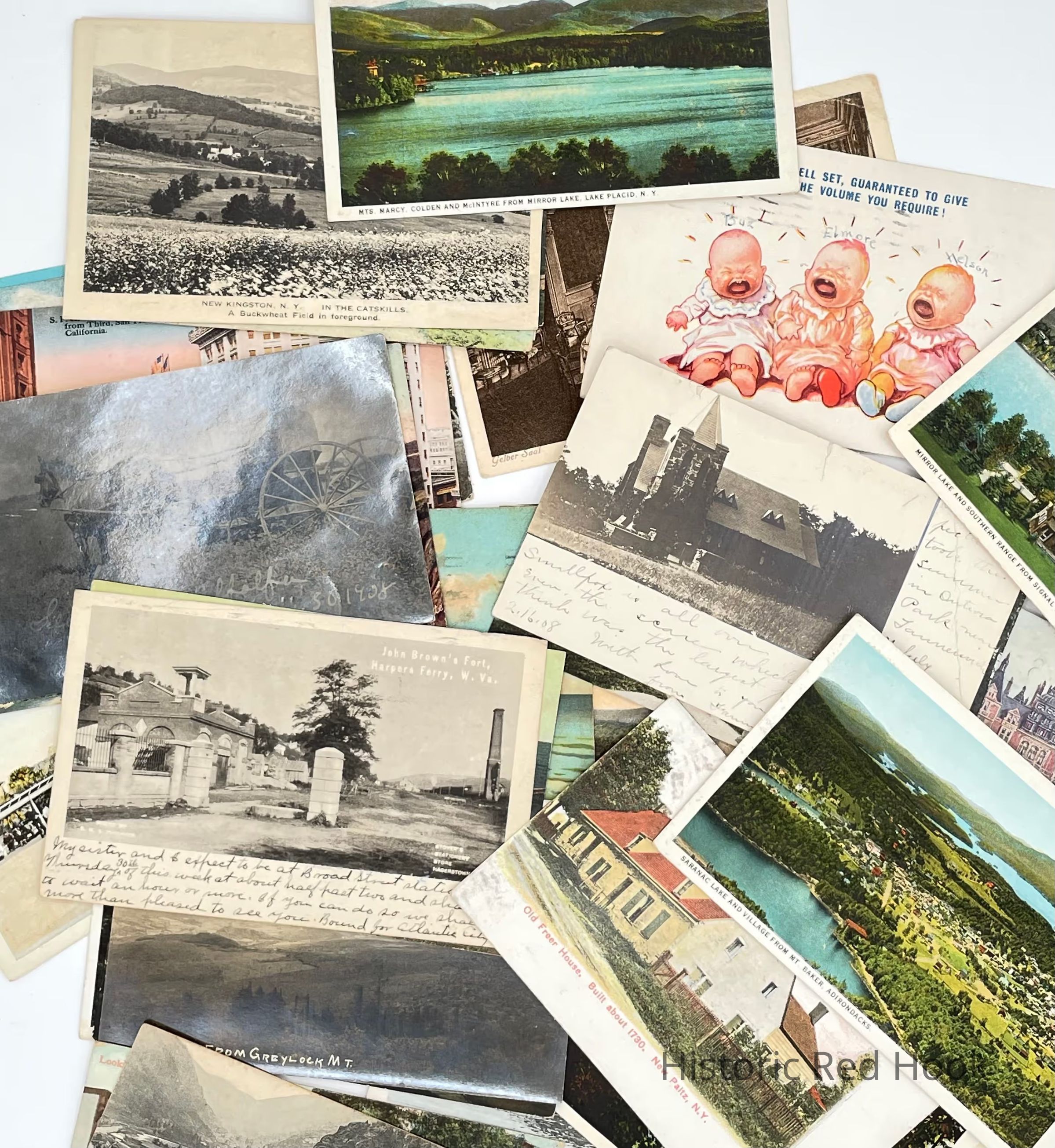 Postcards from afar that were sent to Fraleigh family members here in Red Hook.