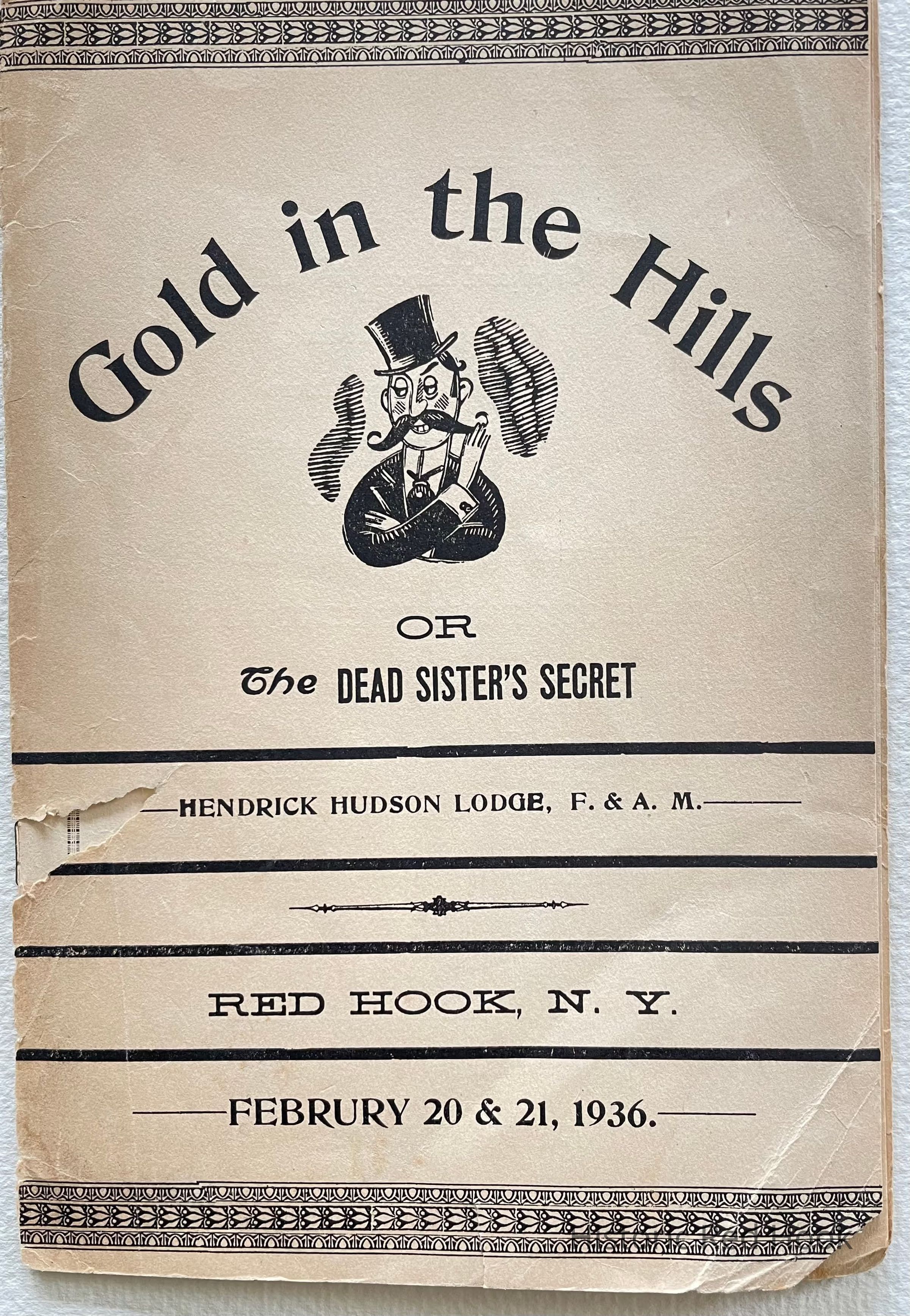 Program from 1936 show "Gold in the Hills or The Dead Sister's Secret" presented by the Hendrick Hudson Lodge.