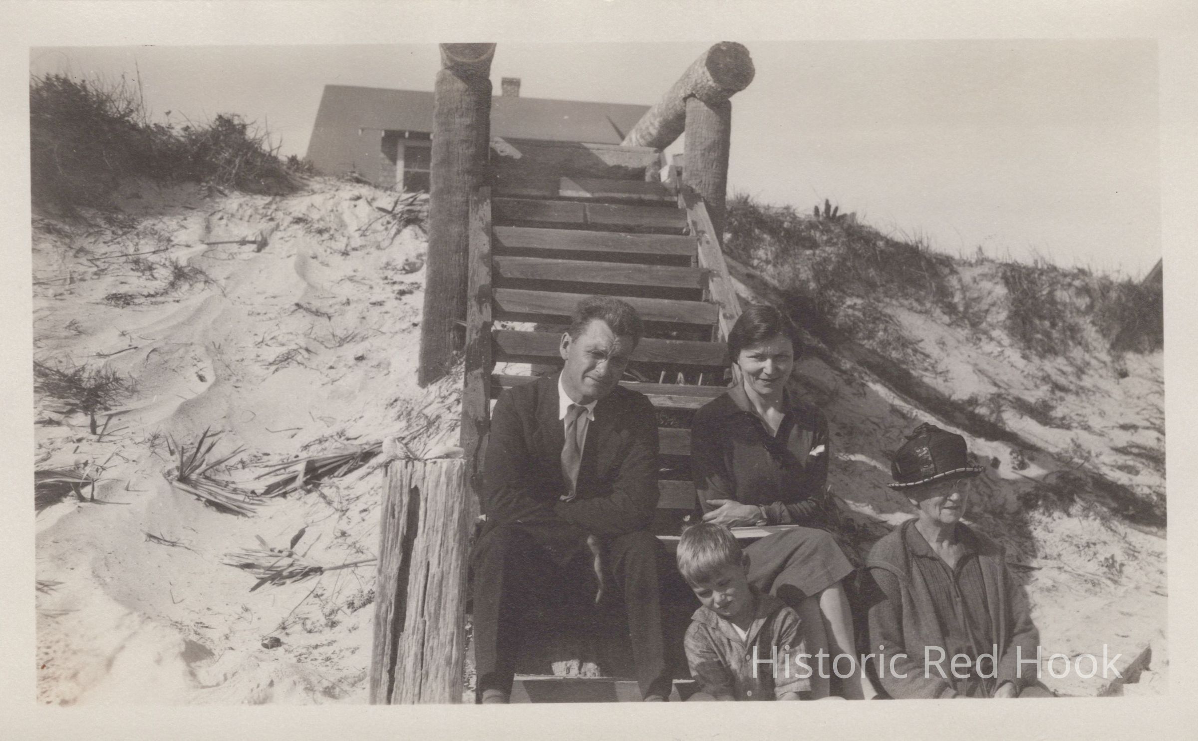 Gordon and Fay Mead with Gordon Jr. and Mrs Emma Kennedy on a beach in Florida,1927
