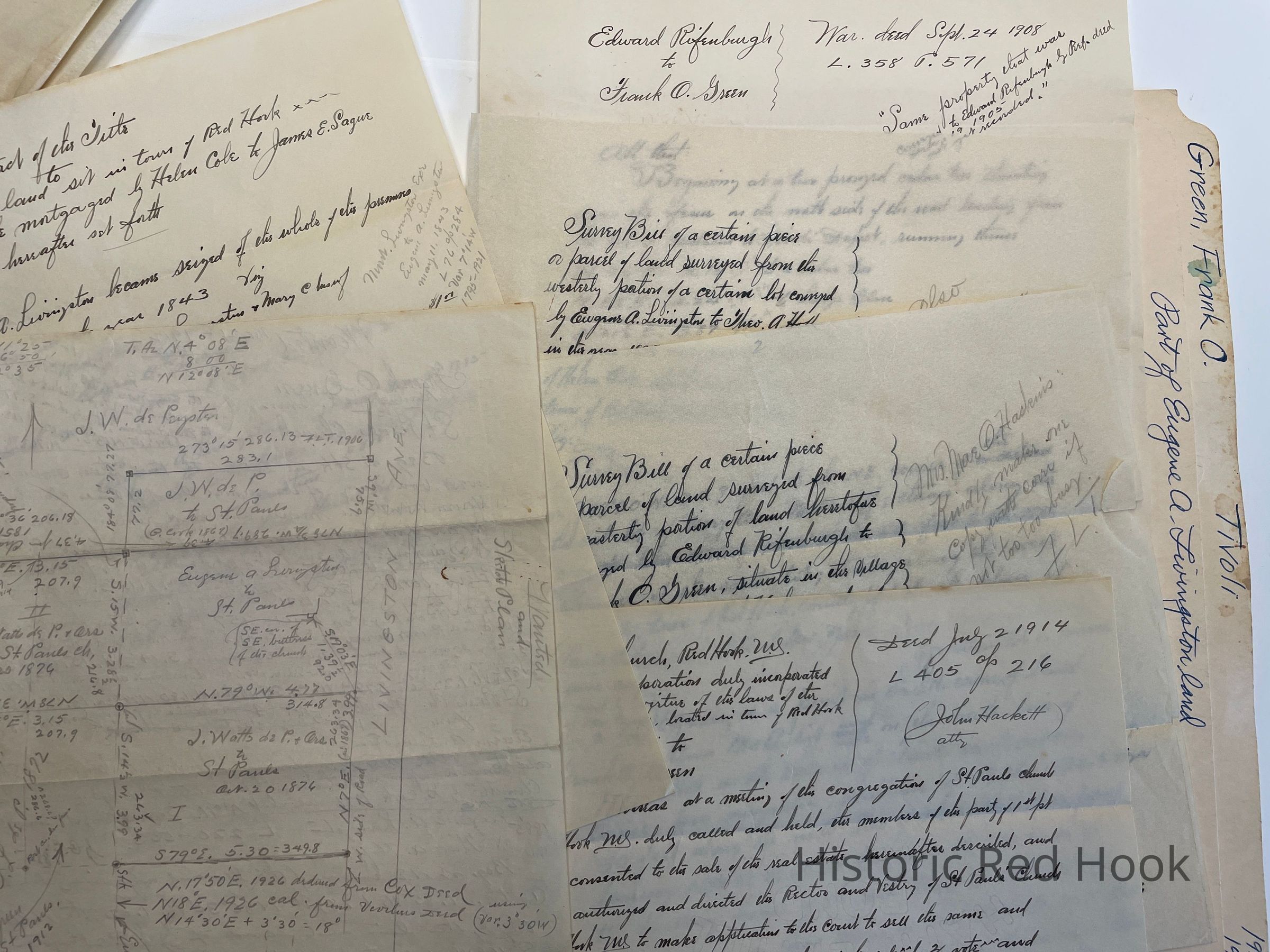 Survey: For Frank O. Green 4 Nov 1926 Parcel from easterly portion of land heretofore from Edward Rifenburgh To Frank O. Green. Tivoli 0.4 acre