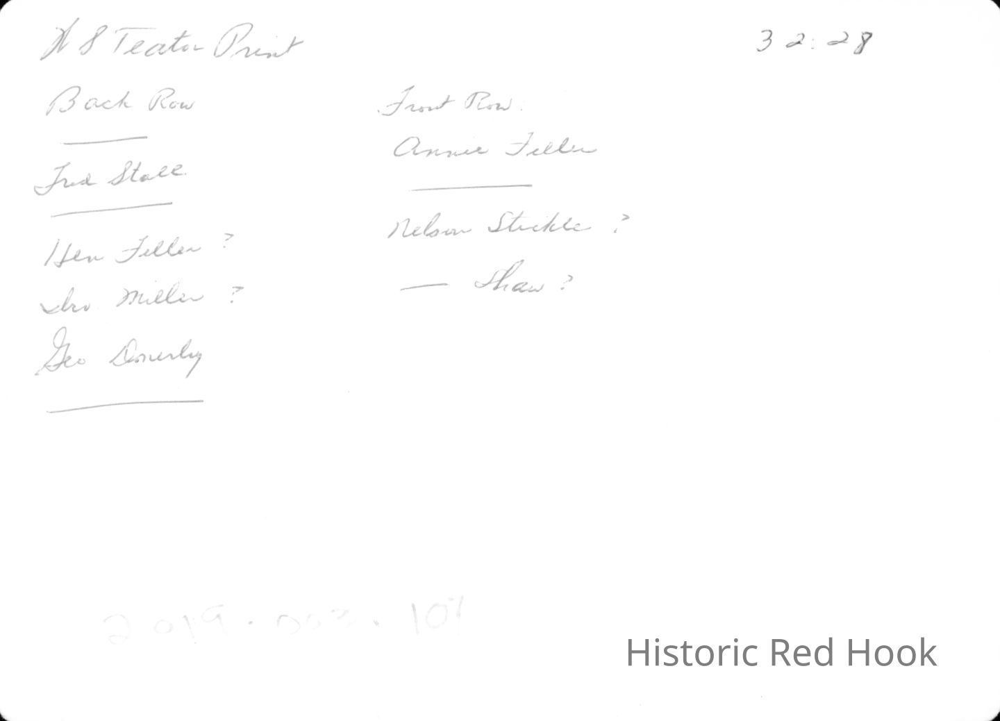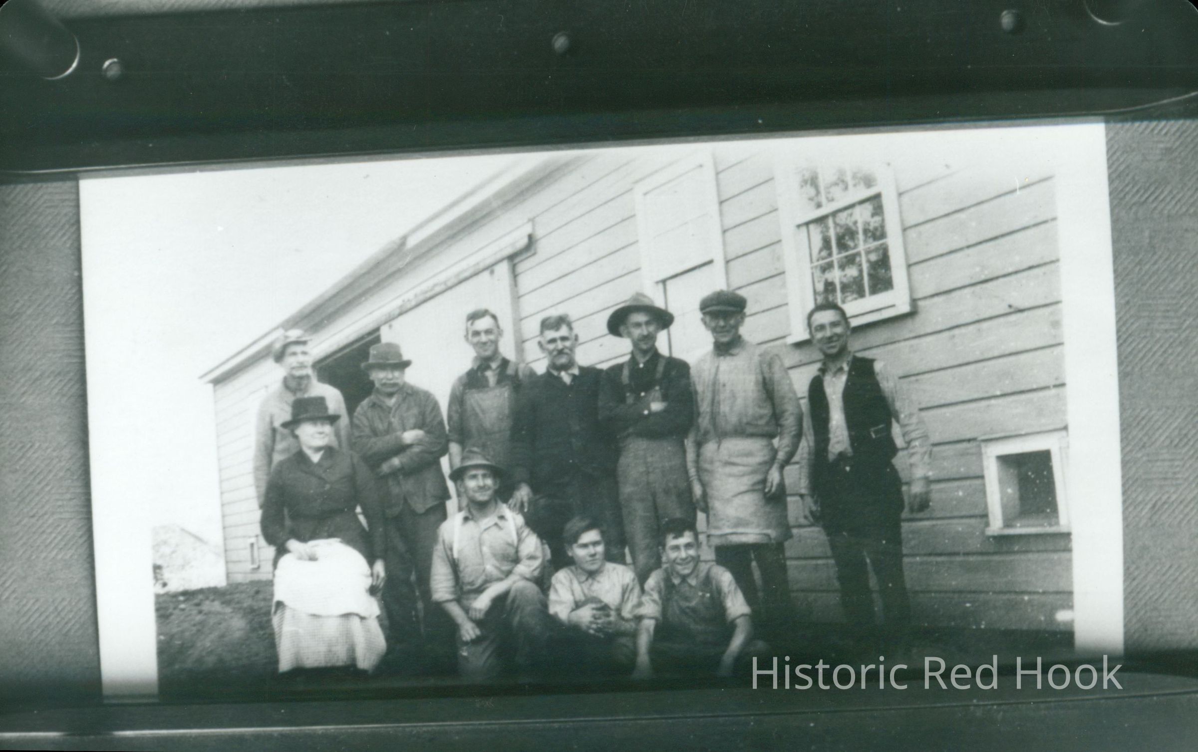 Informal group photograph with several people identified on the back of the photograph.