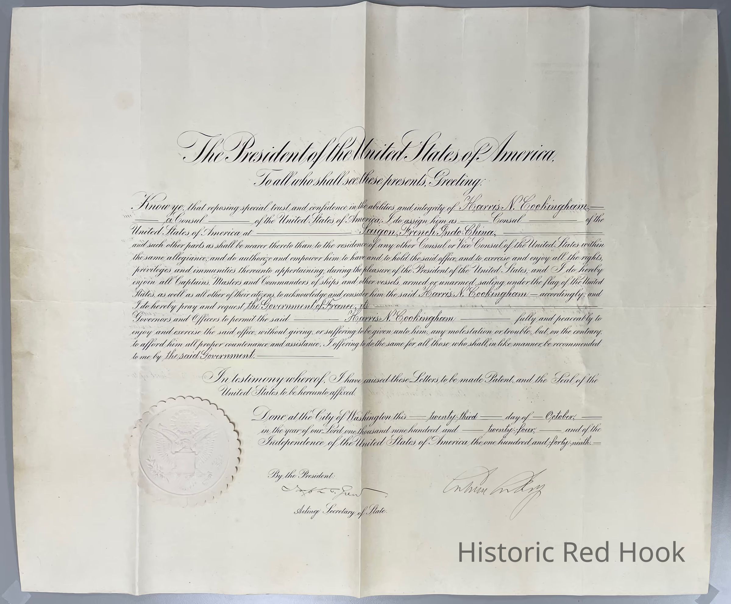 Harris N. Cookingham Consul Appointment Certificate, 1924Entry/Object ID