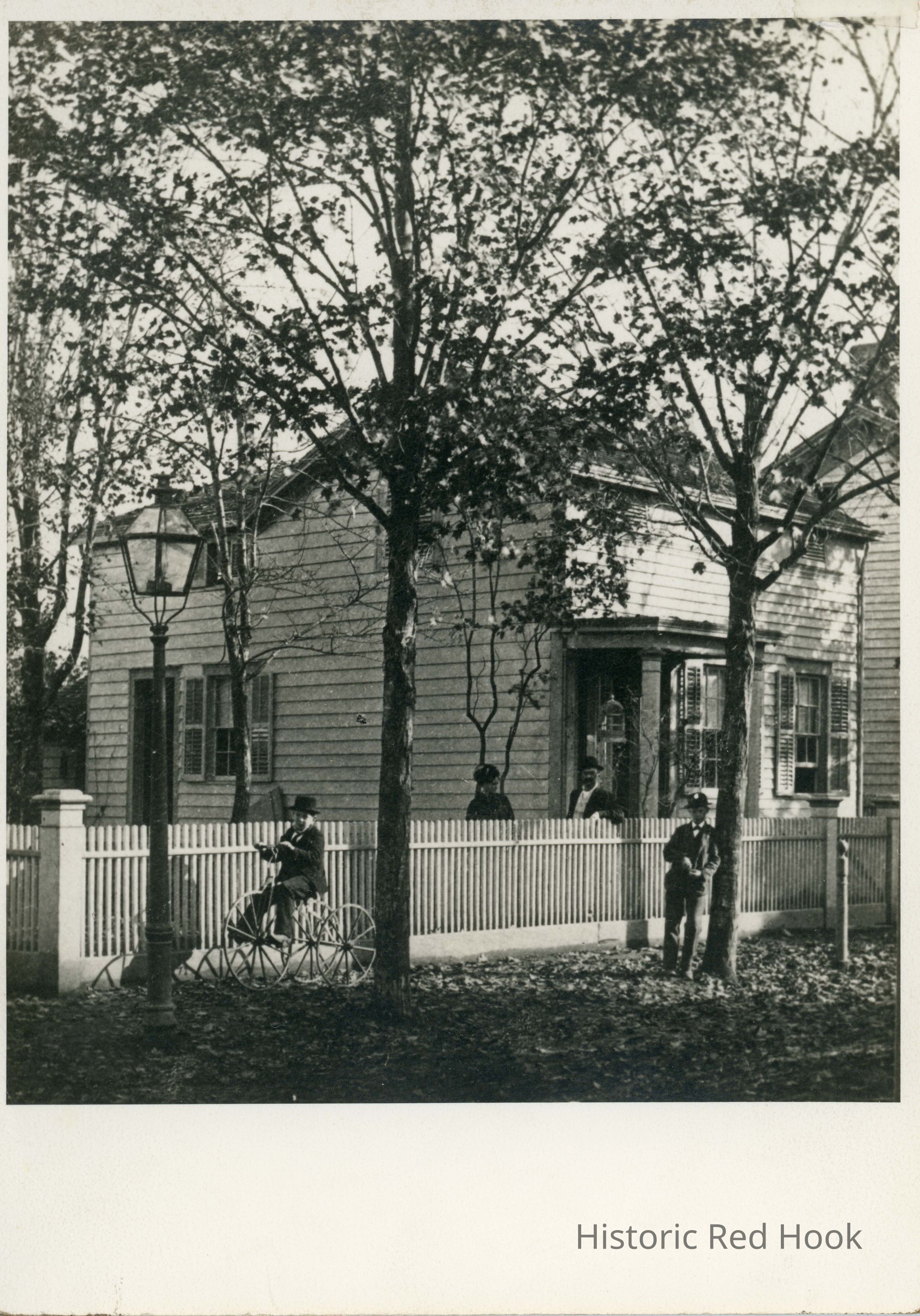 Written on back: A local house & Red Hook denizens, late 19th Century, East Street, George Hart family. Also Near House. Copied from stereoscopic views from Alise Norton.