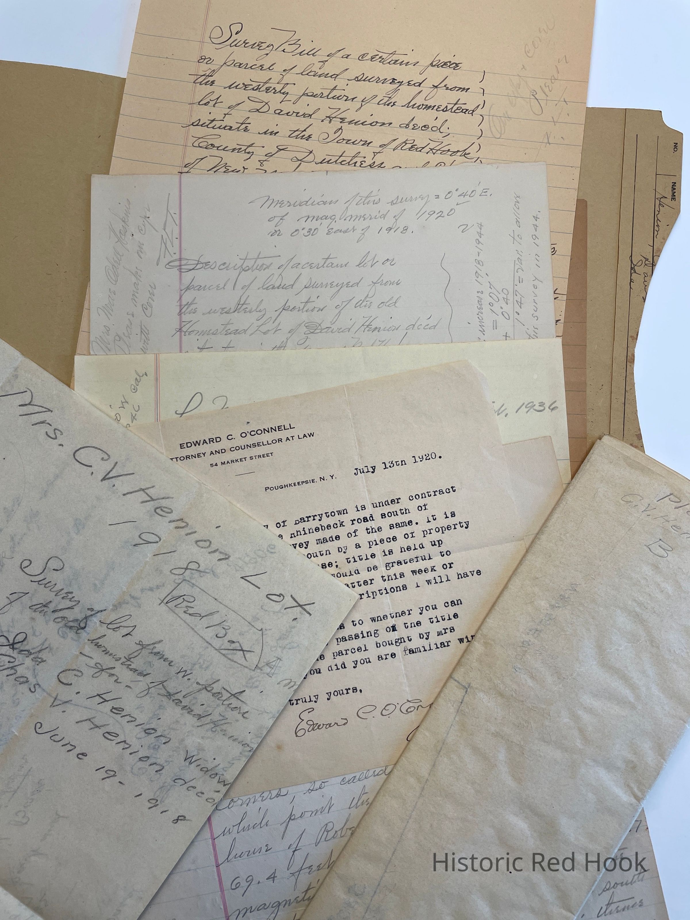 Survey: 19 Jun 1918. Piece under contract to be sold to Margaret Chanler Aldrich by Ida C. Henion. Westerly portion of Homestead Farm of David Henion, Dec’d 0.62 acre.Collection