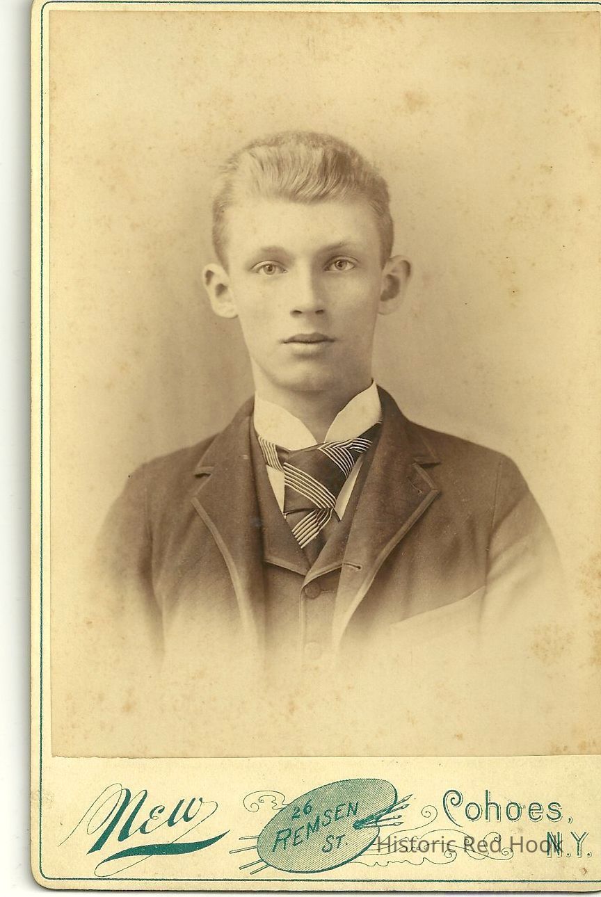 Two formal portraits of Henry Brenzel as a young man, one is an edited version.