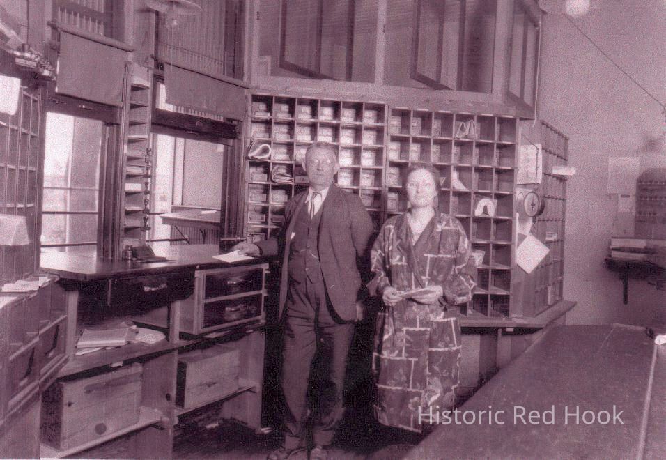 Henry Brenzel (Red Hook Postmaster 1925-1937) and Ida Germond, Assistant Postmaster at post office located at 29 West Market Street, Red Hook.Photograph Details