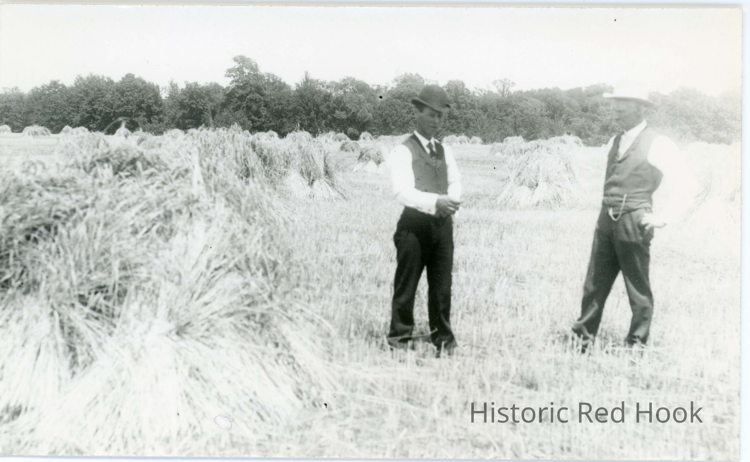 Henry Elting and another man standing in his rye field on Pitcher Lane, c 1905