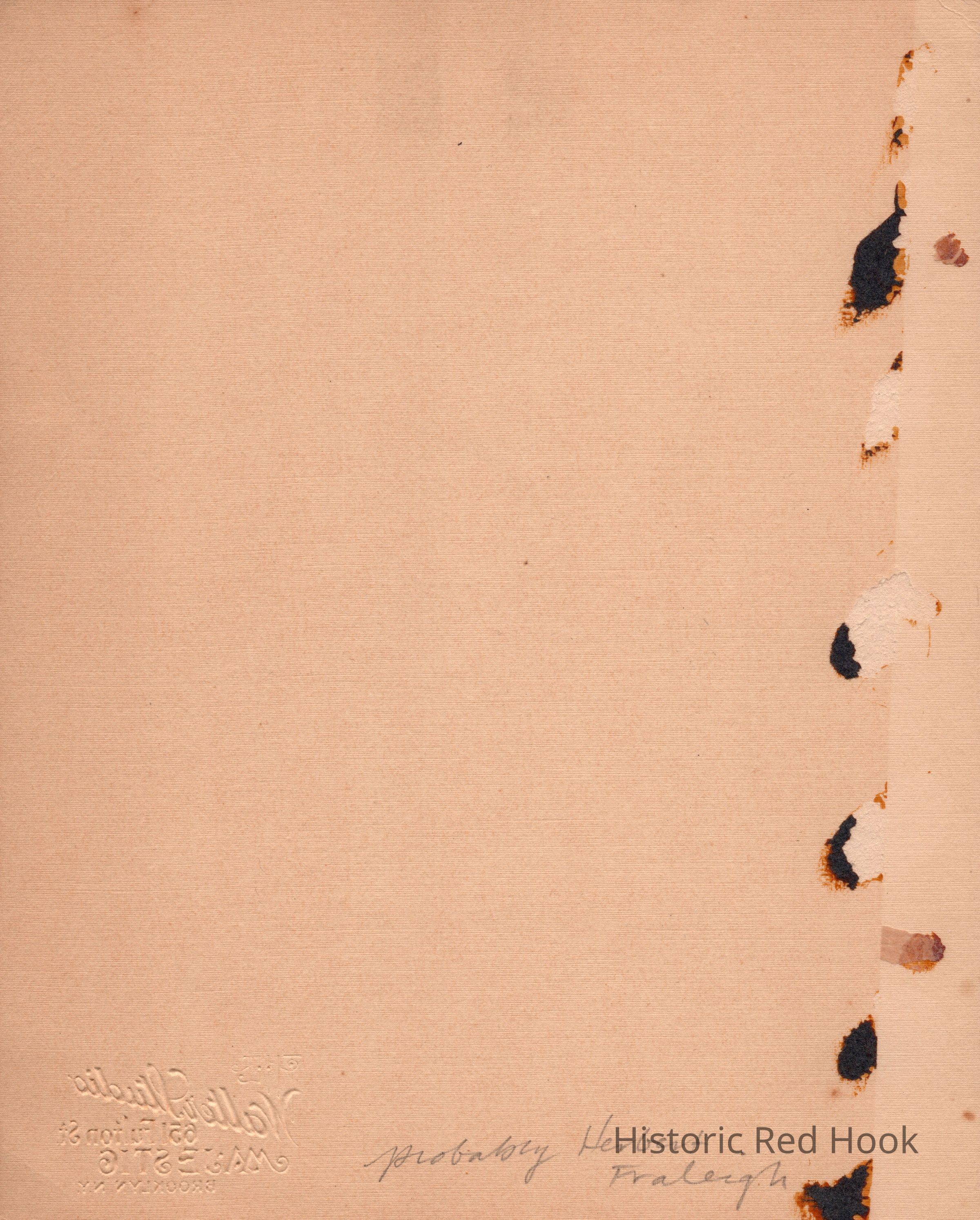 A formal Brooklyn Studio portrait taken of a man identified as "probably" Herbert Fraleigh.Photograph Details