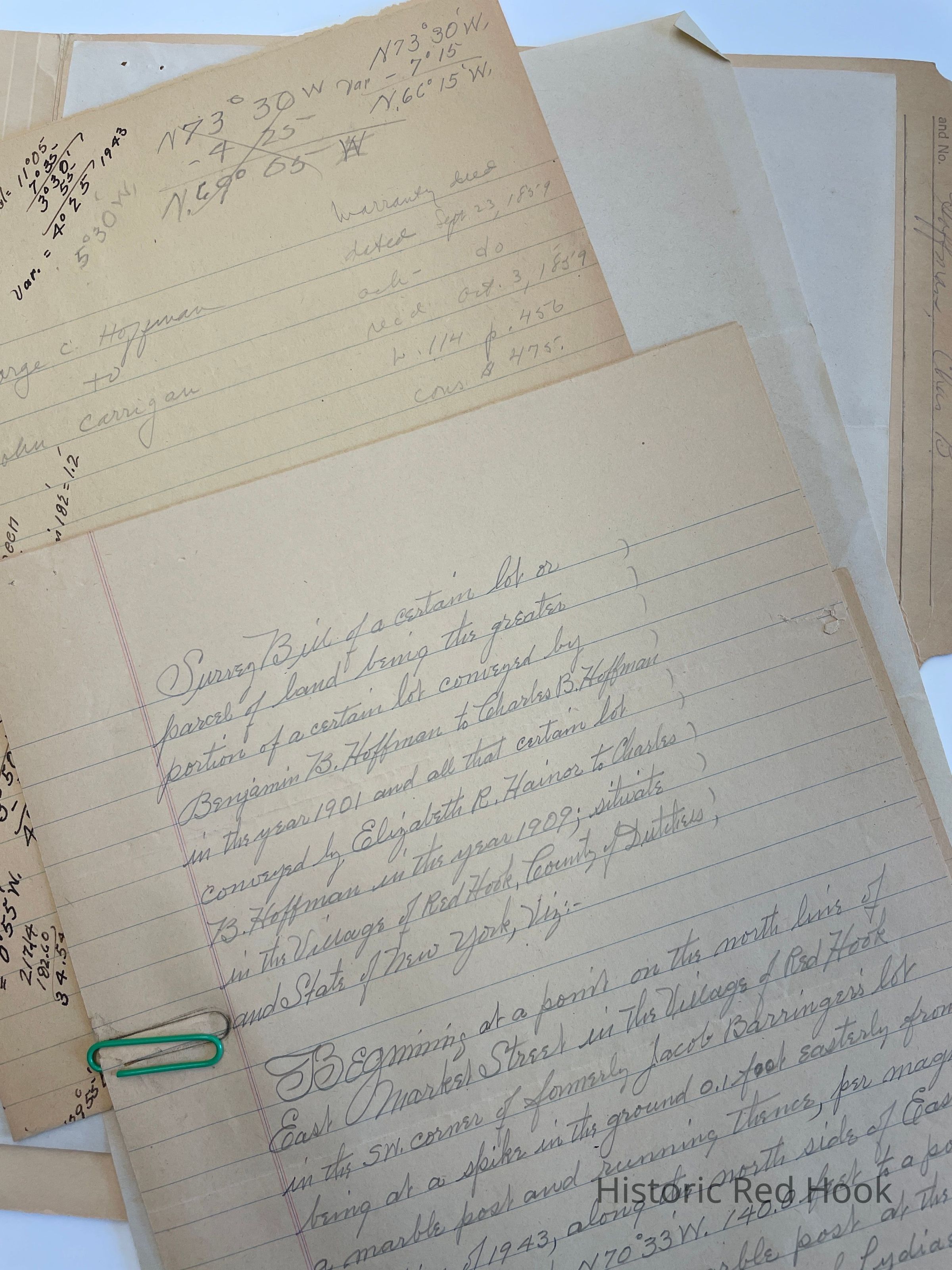 Survey: For Charles B. Hoffman 30 Sep 1943 1.52 acres. Lot from Benjamin B. Hoffman to Charles B. Hoffman in 1901 and another lot from Elizabeth R. Hainor to Charles B. Hoffman in 1909